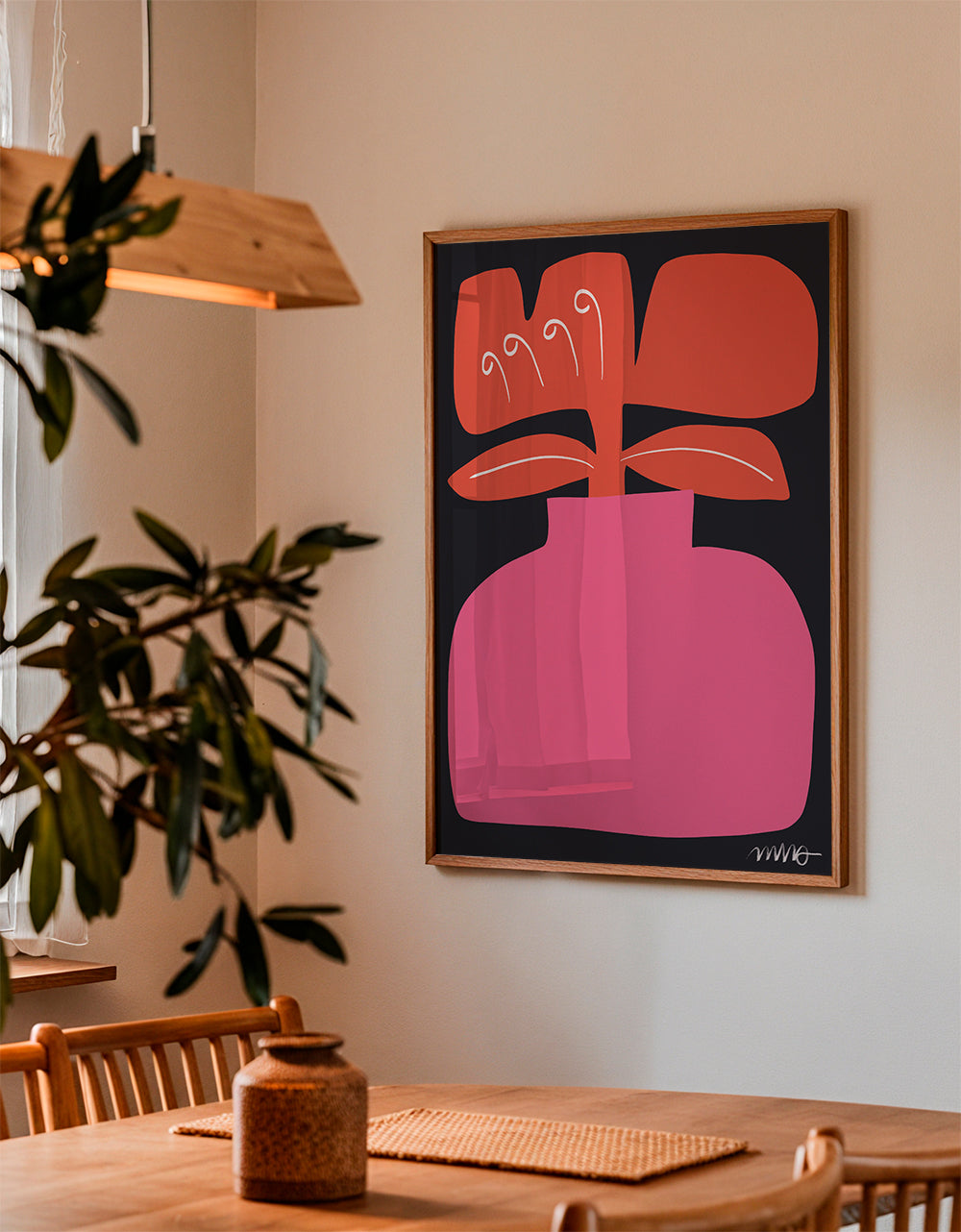 Una stampa della collezione quadri di fiori e piante, originale di Vaanzaal, dalle sfumature rossi, e nel formato verticale. I quadri con illustrazioni danno un tocco di originalità all'home decor della tua abitazione. Arte e design allo stato puro.