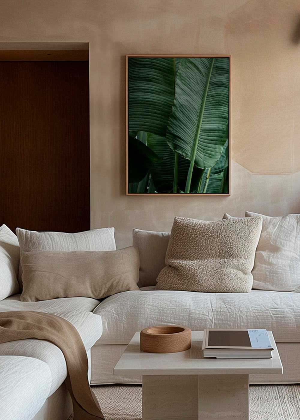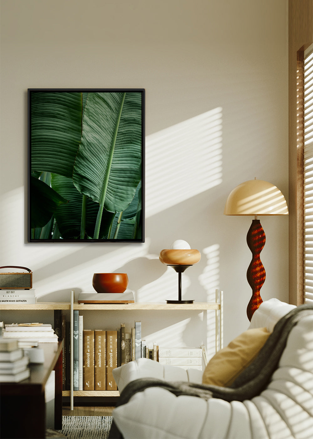 Una immagine della nostra collezione di quadri con foglie, dell'artista Mareike Böhmer, sui toni verdi, e con disposizione verticale. Crea un giardino verticale abbinando quest'opera ad altri quadri di fiori e piante. Le pareti decorate con i quadri sono il non plus ultra.