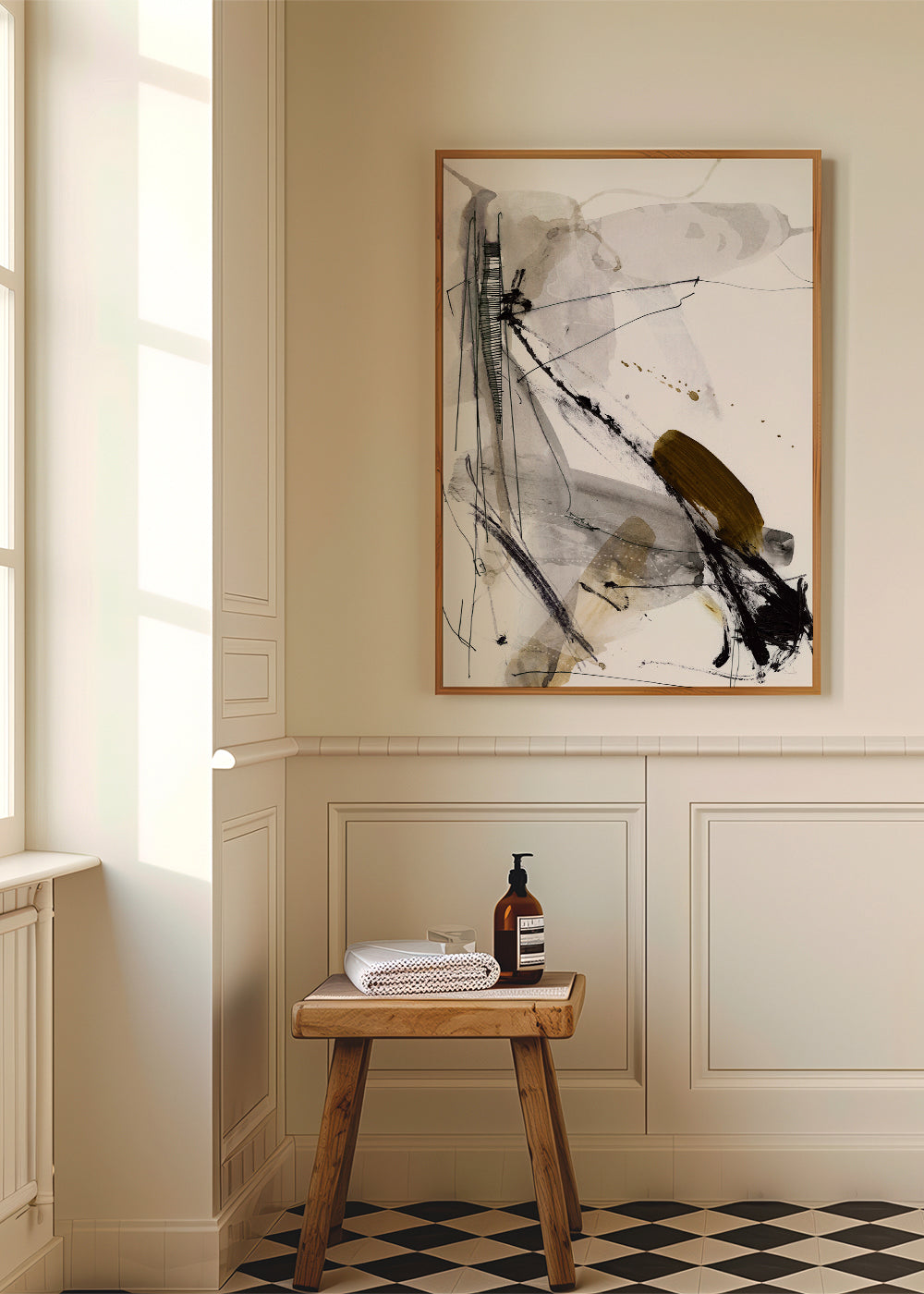 Un quadro della nostra selezione di quadri astratti, di 1x, con dei tocchi grigio, e con disposizione verticale. Si tratta di un'quadro astratto ideale praticamente per qualunque ambiente della casa. Crea l'ambiente perfetto.