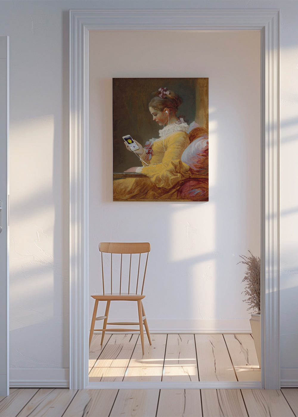 Per evitare rotture, le nostre cornici incorporano vetro acrilico al posto del vetro. Il vetro acrilico riproduce l'effetto del vetro, ma evita possibili danni durante il trasporto o il posizionamento della cornice.