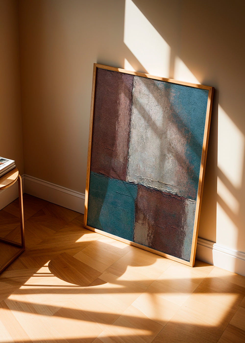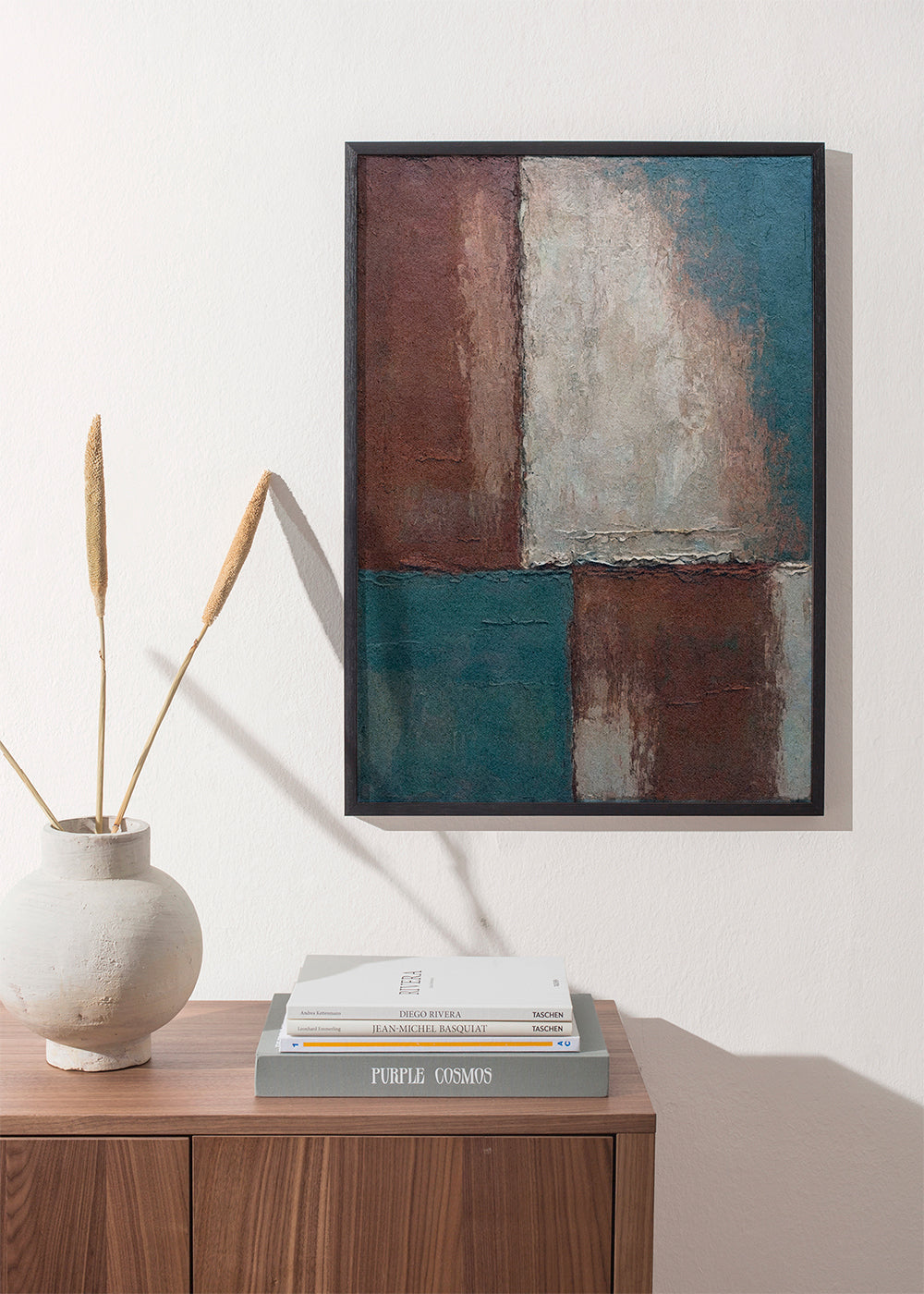Un design della nostra collezione di quadri geometrici, creata da 1x, con toni blu, e con disposizione verticale. Le forme geometriche e astratte contribuiscono a creare un ambiente spensierato e creativo. Pareti traboccanti di creatività.