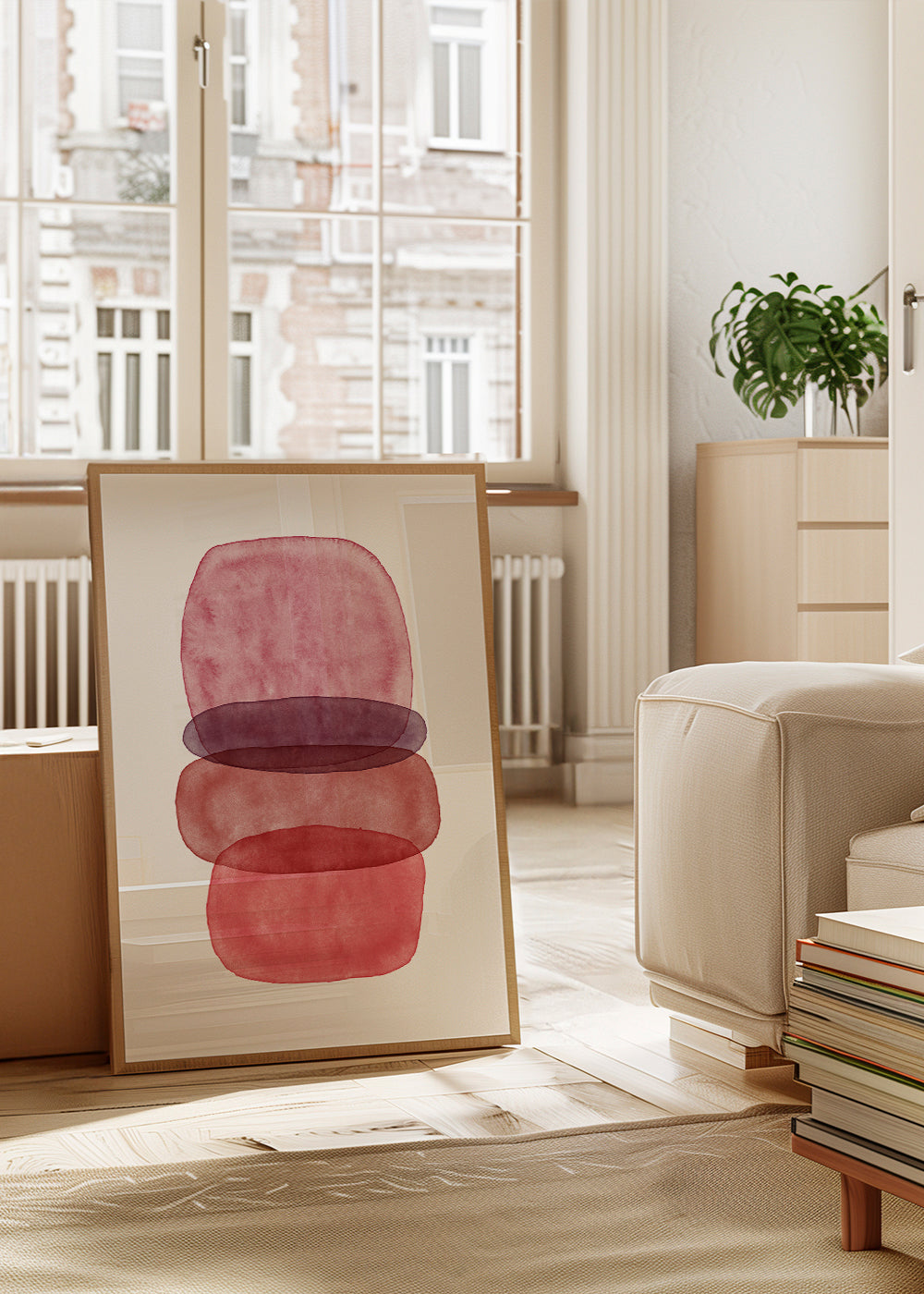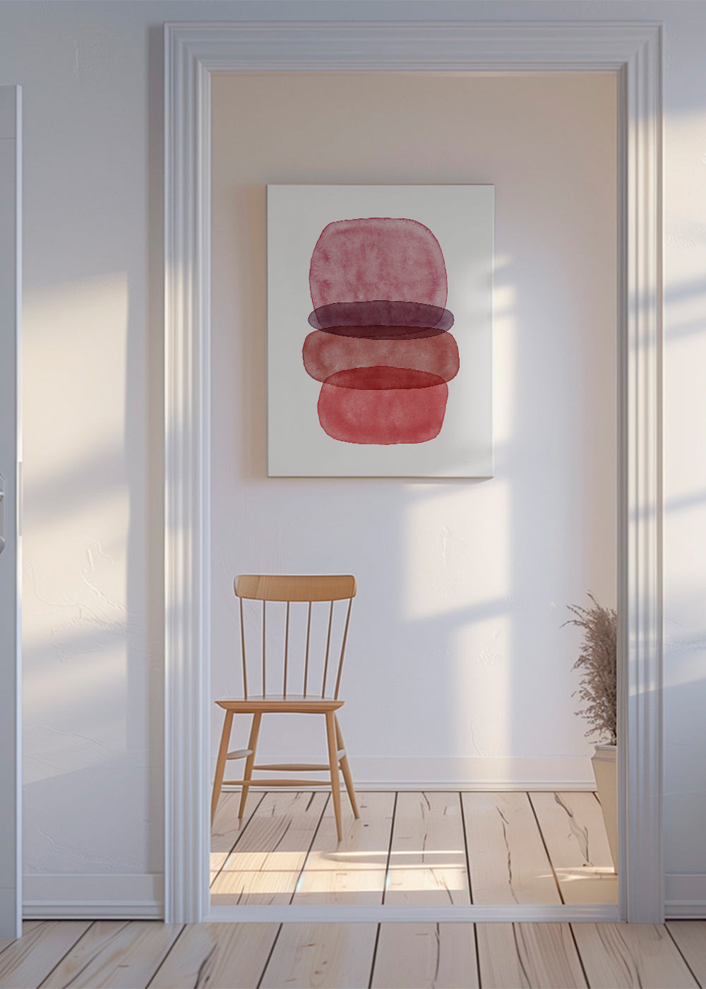 Una opera dal nostro repertorio di quadri geometrici, dell'artista Nouveau Prints, con tonalità di colori rossi, e ideale da mettere in posizione verticale. Le forme geometriche e astratte contribuiscono a creare un ambiente spensierato e creativo. Crea angoli speciali.