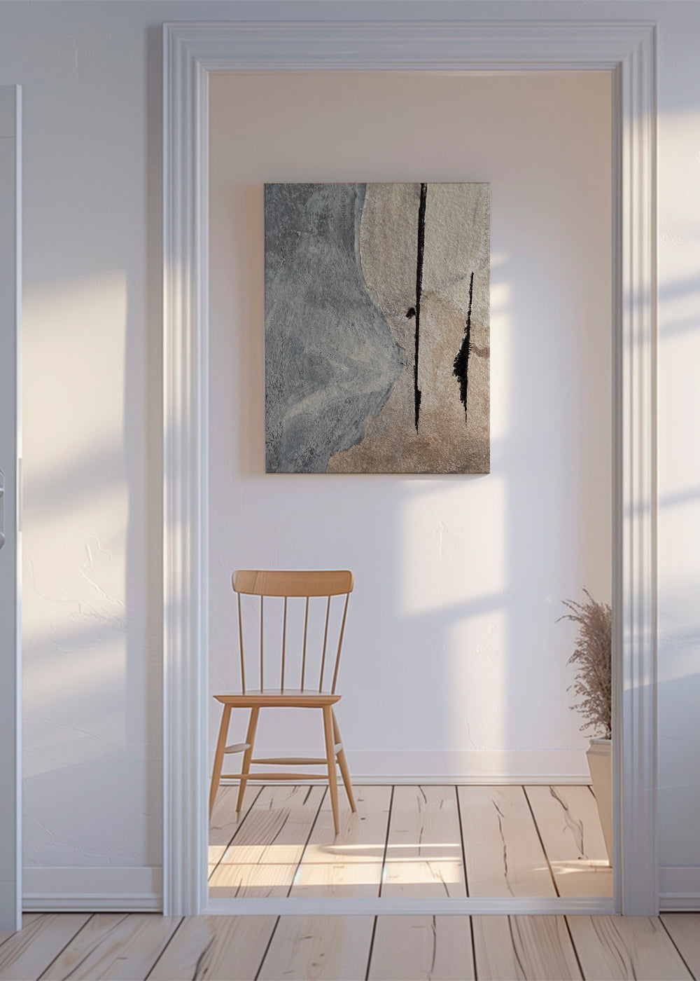 Bello quadro ispirato alla collezione di quadri astratti, dell'artista Elena Camacho Art, sui toni grigio, e con posizione verticale. Se hai bisogno di dare più stile e originalità al tuo home decor, questo design astratto conferirà un tocco all'avanguardia alle pareti della tua casa. Costruisci il tuo angolo preferito.
