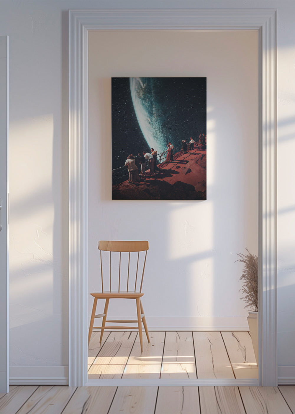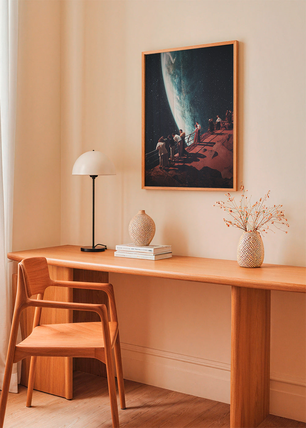 Un poster della nostra selezione di quadri con pianeti, realizzata da Frank Moth, con pigmenti marroni, e nel formato verticale. Se sei alla ricerca di un complemento retrò da aggiungere al tuo home decor, questo design è perfetto per te. Abbinalo ad altri poster in stile vintage per creare uno stile davvero originale. Il quadro che quella parete sta aspettando.