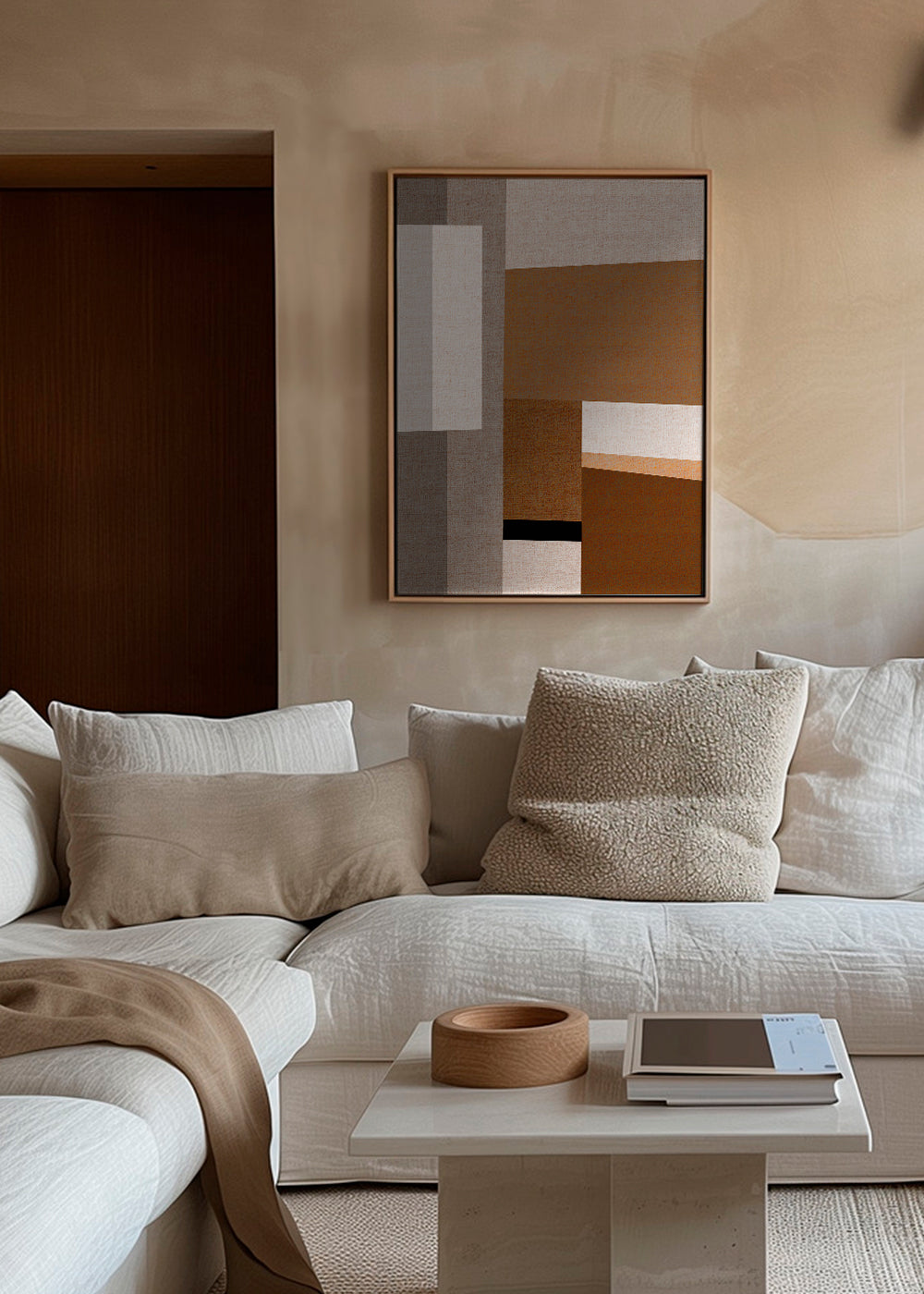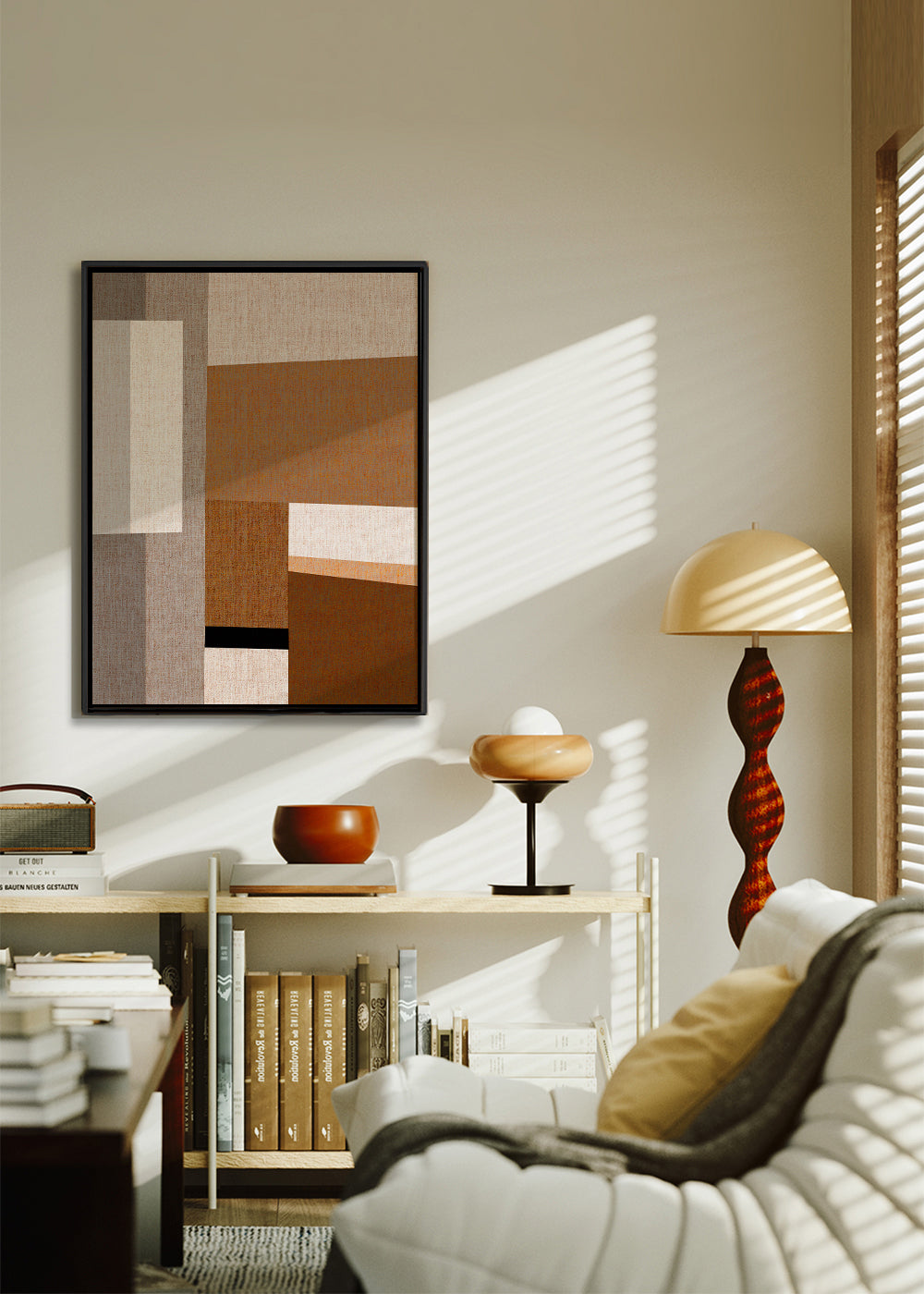 Questo design dal nostro repertorio di quadri geometrici, di 1x, sui toni marroni, e con disposizione verticale. L'arte geometrica è uno stile raffinato per la decorazione delle pareti di casa. La personalità di una casa passa per le sue pareti.