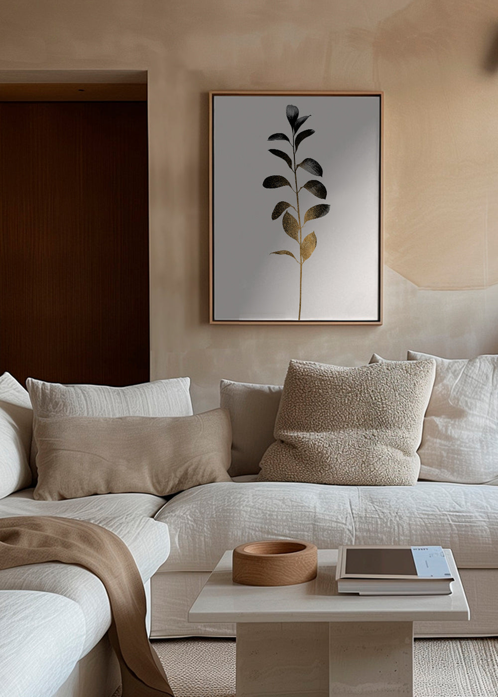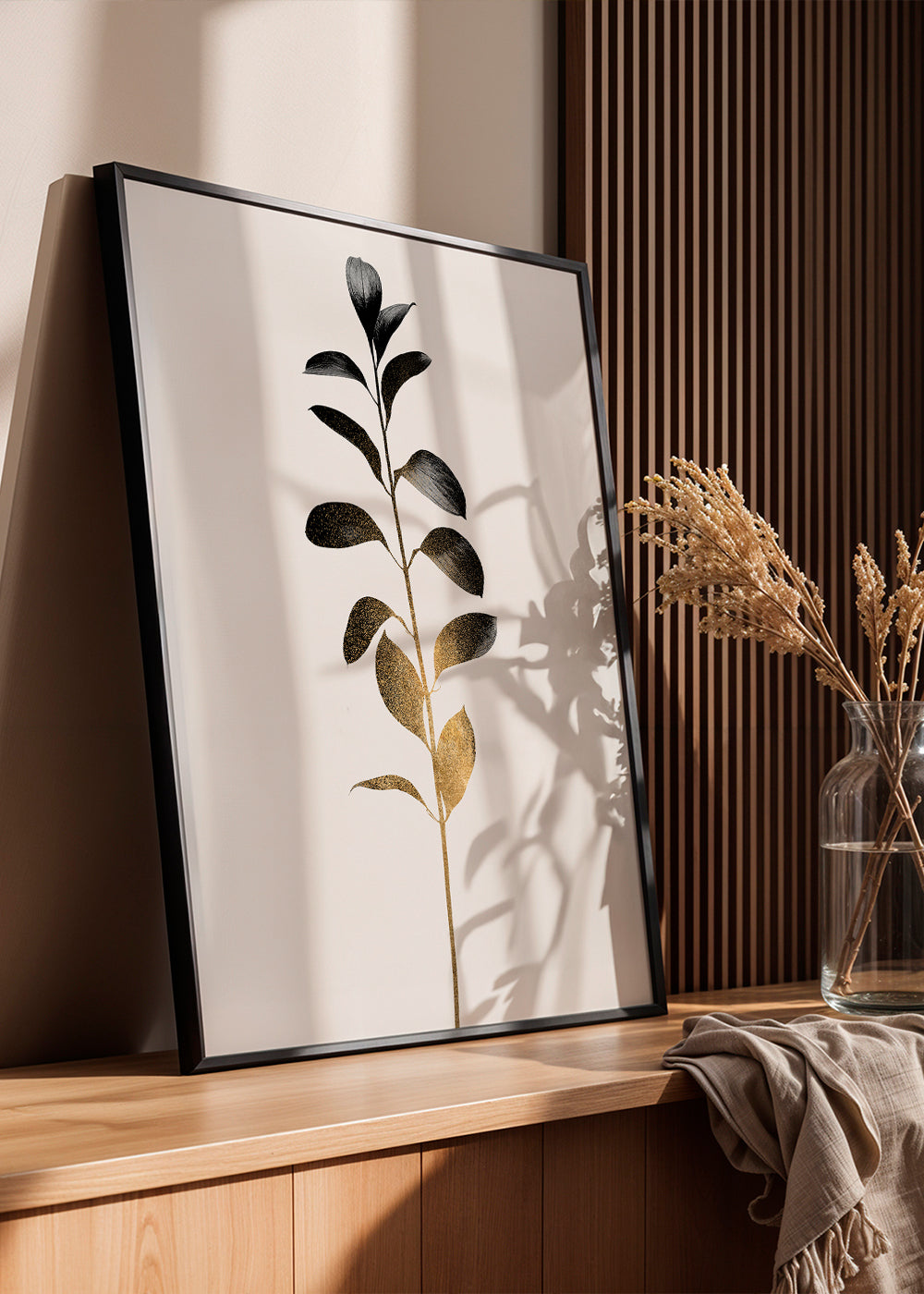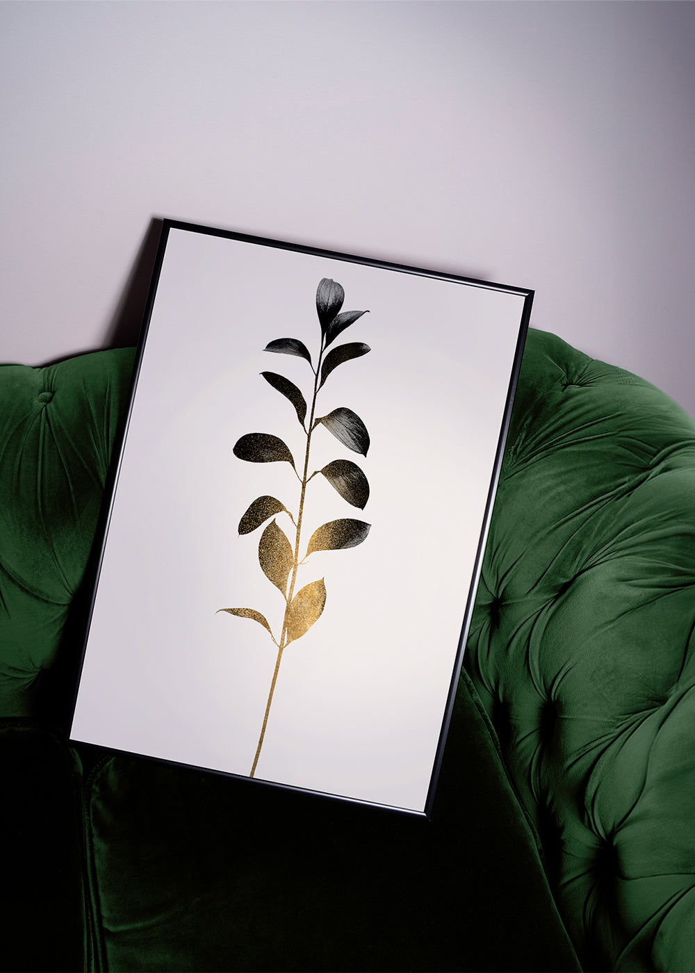 Un quadro appartenente alla categoria di quadri con foglie, ideata da Kubistika, con colori dorati, e da mettere in posizione verticale. Questo design darà un tocco di spensieratezza alla tua casa, inoltre si abbina molto bene ad altri quadri di fiori e piante e a scritte e frasi. Rinnovare le pareti può dare uno stile del tutto nuovo al tuo home decor.