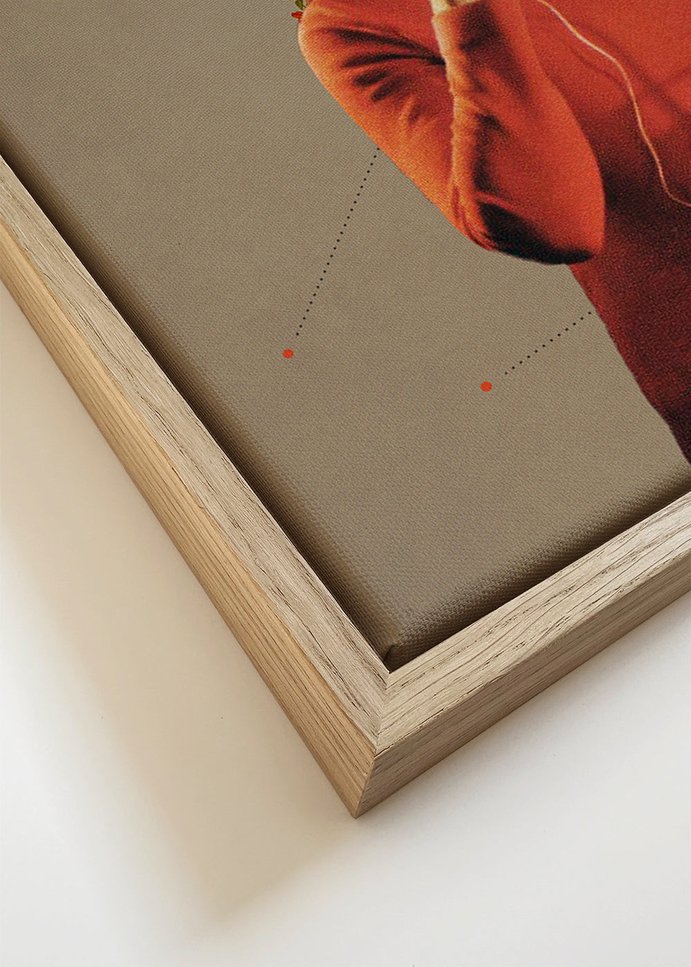 Per evitare rotture, le nostre cornici incorporano vetro acrilico al posto del vetro. Il vetro acrilico riproduce l'effetto del vetro, ma evita possibili danni durante il trasporto o il posizionamento della cornice.