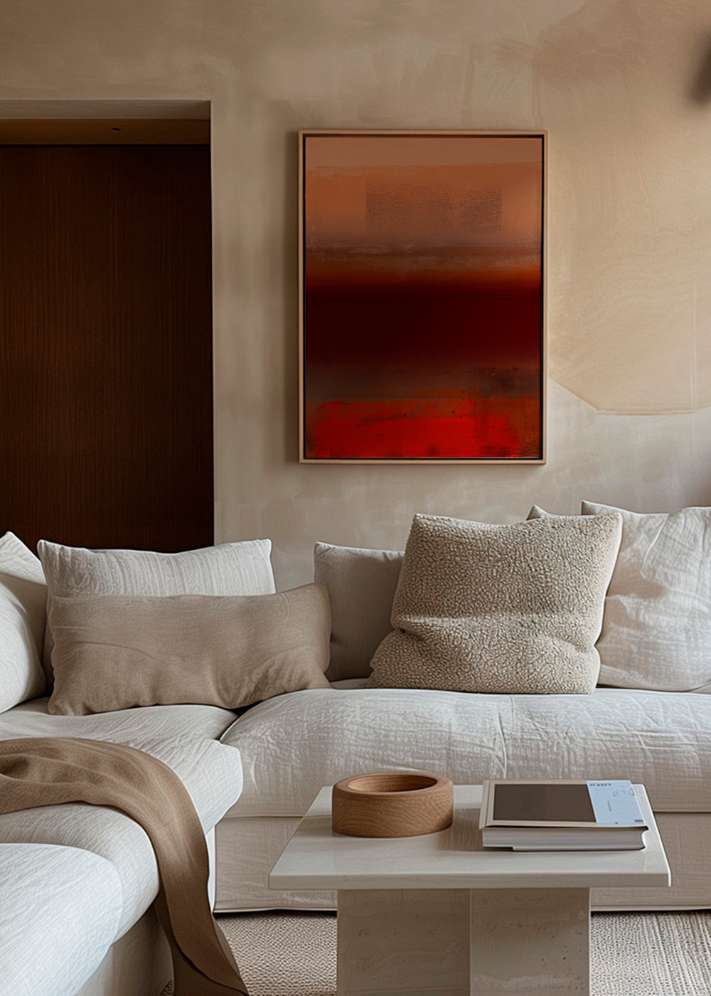 Bella pieza della nostra collezione di quadri astratti, realizzata da Michael Hunter, con tonalità di colori rossi, e orientata in senso verticale. L'arte astratta stimola la nostra mente e ci fa riflettere sul significato delle opere. Una parete spoglia è priva di carattere, ma con qualche quadro le daremo personalità.