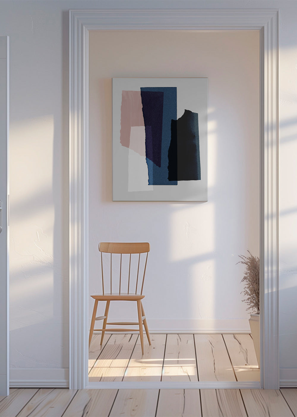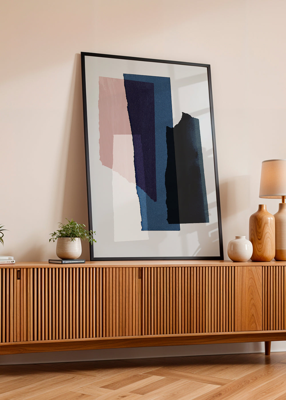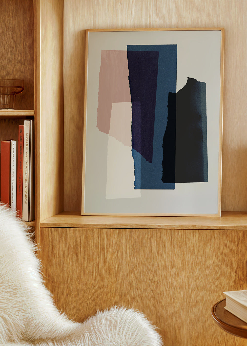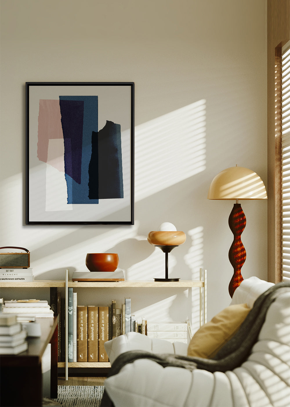 Un poster nello stile dei nostri quadri a pennello, ideata da Mareike Böhmer, sui toni blu, e ideale da mettere in posizione verticale. Le forme geometriche e astratte contribuiscono a creare un ambiente spensierato e creativo. Combina le nostre opere in vario modo per ottenere lo stile che cerchi.