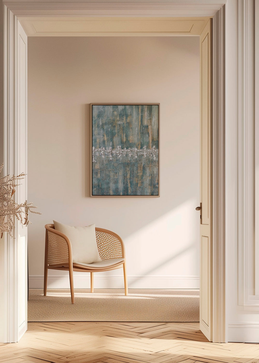Per evitare rotture, le nostre cornici incorporano vetro acrilico al posto del vetro. Il vetro acrilico riproduce l'effetto del vetro, ma evita possibili danni durante il trasporto o il posizionamento della cornice.