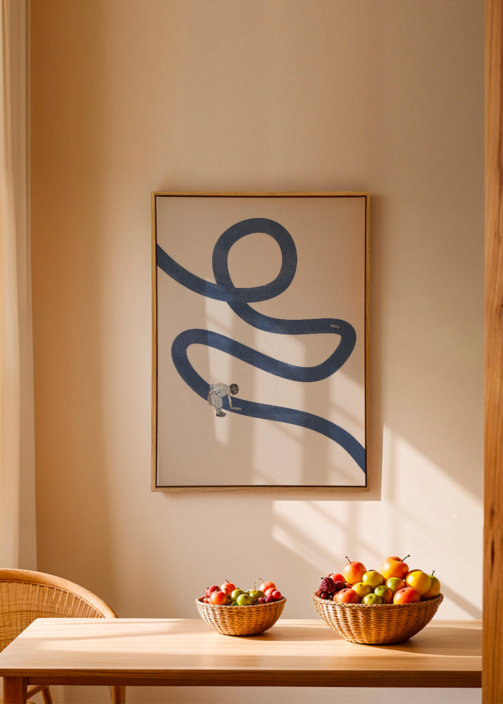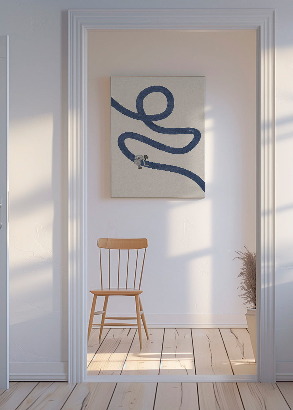 Una opera dal nostro set di quadri vintage e stampe retrò , creata da Maarten Léon, dalle sfumature blu, e da appendere in posizione verticale. Un'opera dallo stile retrò ideale per un home decor dai tocchi vintage. I dettagli fanno la differenza.