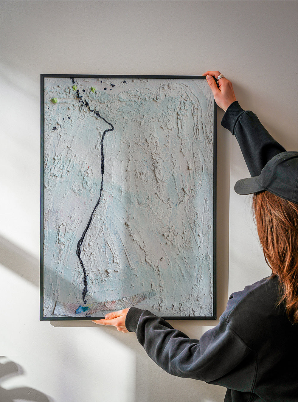 Se acquisti una cornice senza poster sul nostro sito web, riceverai il vetro acrilico con una protezione bifacciale blu per evitare graffi. Puoi rimuovere facilmente i due strati di protezione e avrai il telaio pronto per l'uso.