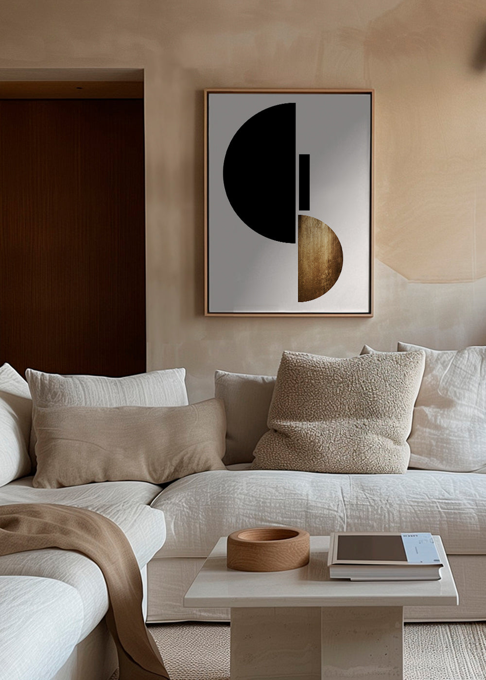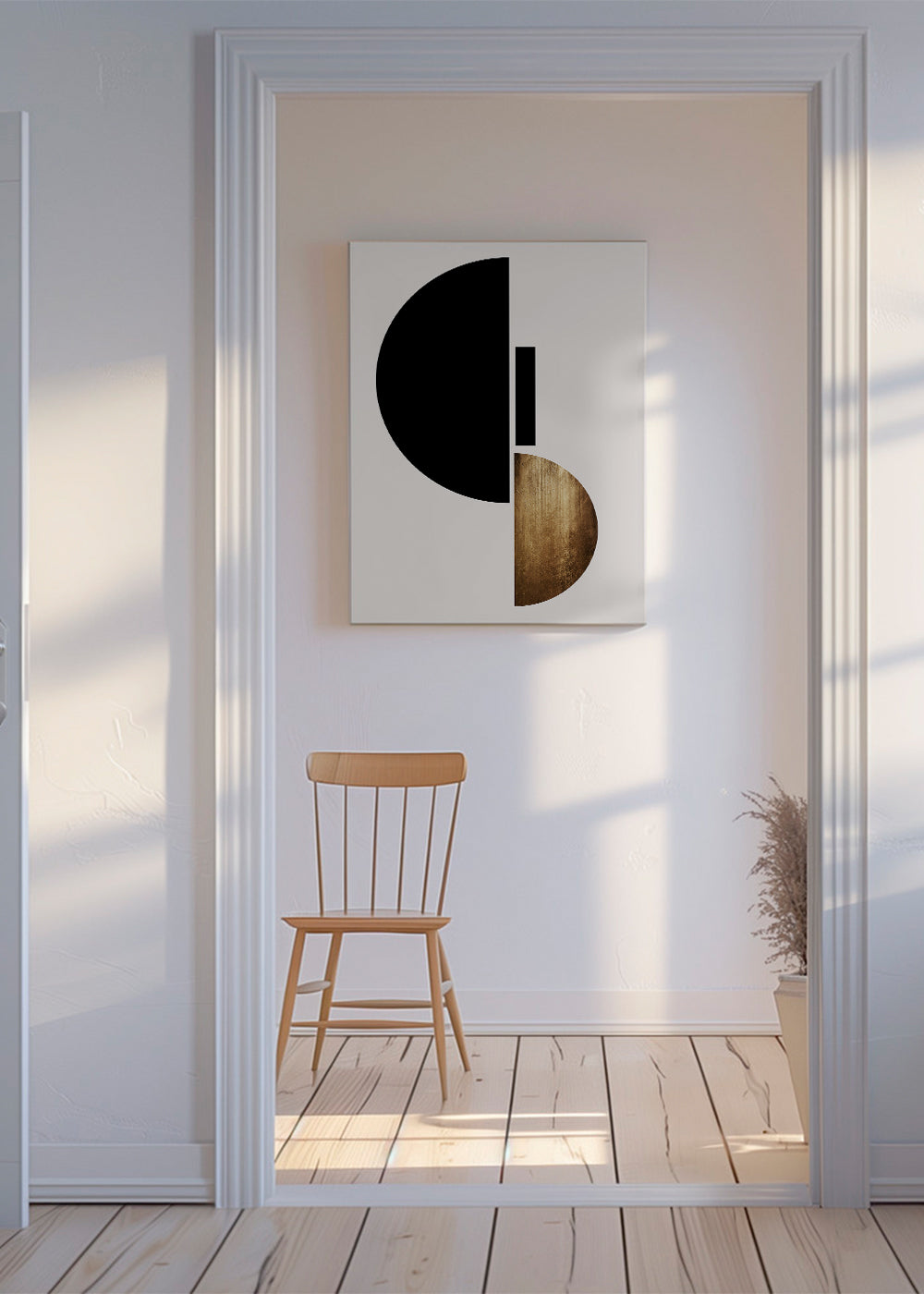 Un design della collezione quadri geometrici, ideata da Kubistika, con tonalità di colori dorati, e da mettere in posizione verticale. Quest'opera con motivi astratti è ideale da abbinare a quadri geometrici e di arte astratta. Libera il tuo spirito creativo e decora le pareti di casa in modo artistico.