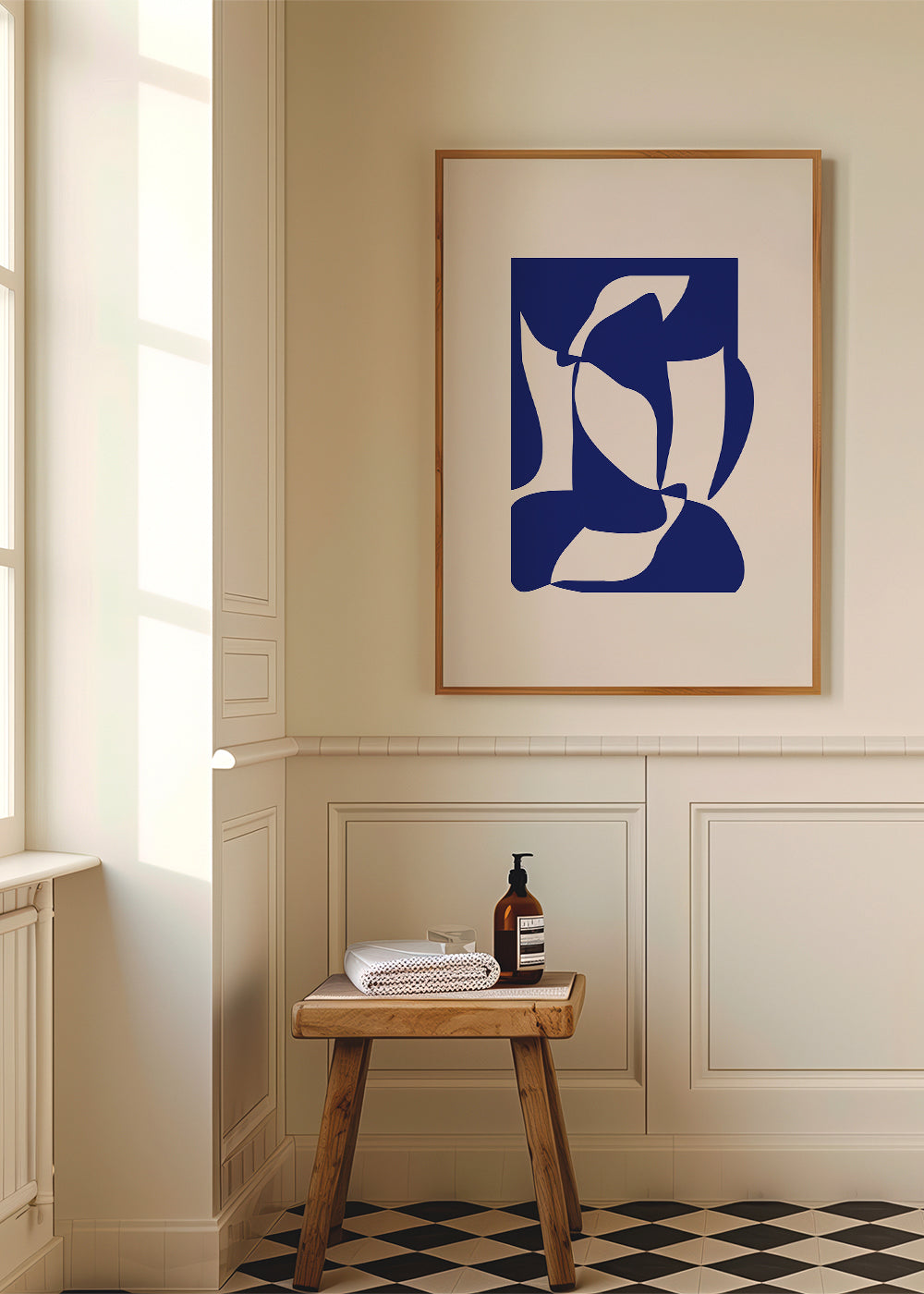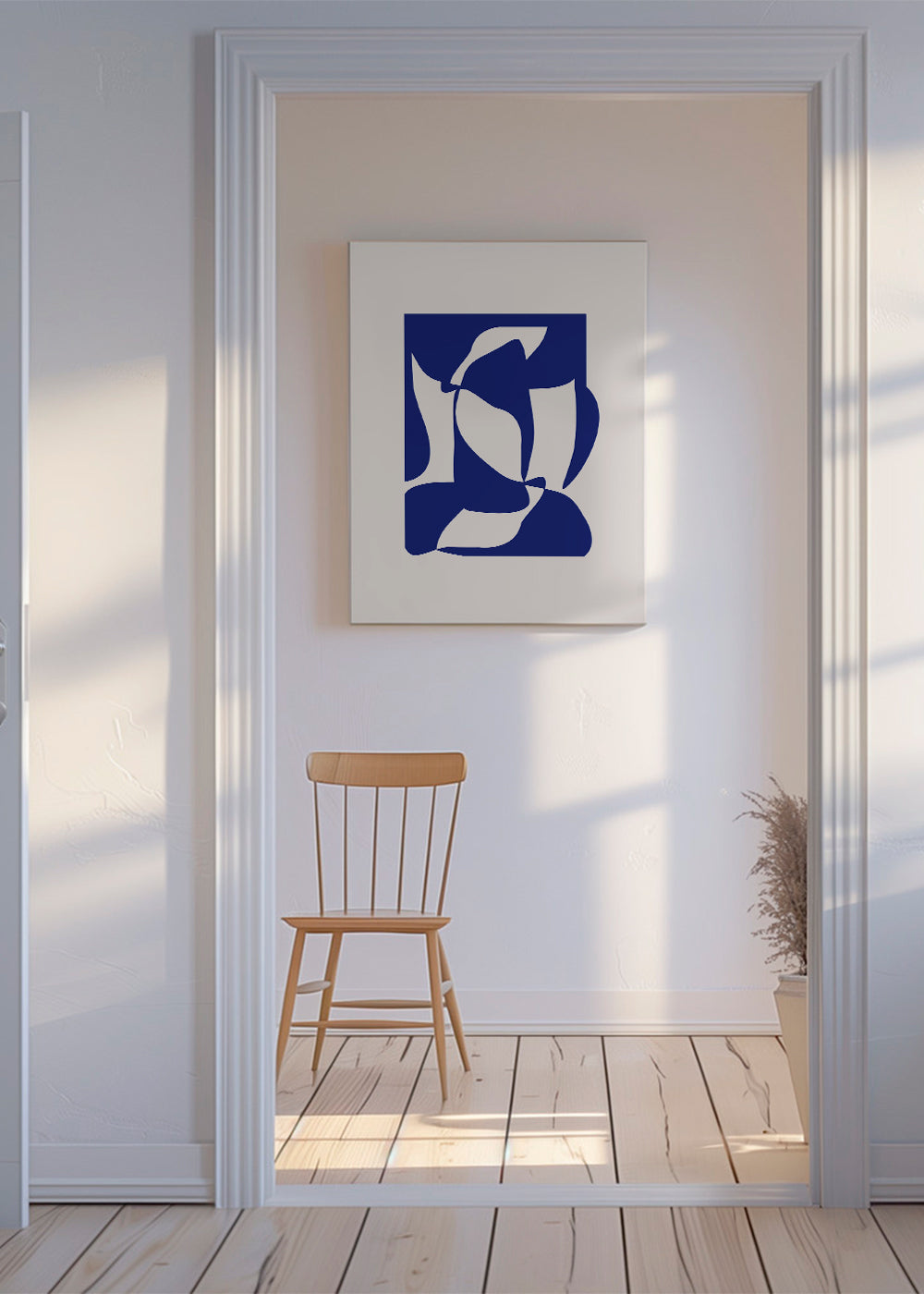 Una opera della nostra collezione di quadri astratti, dell'artista Anna Mainz, sui toni blu, e da appendere in posizione verticale. L'arte astratta stimola la nostra mente e ci fa riflettere sul significato delle opere. Una parete spoglia è come una tela bianca da dipingere.