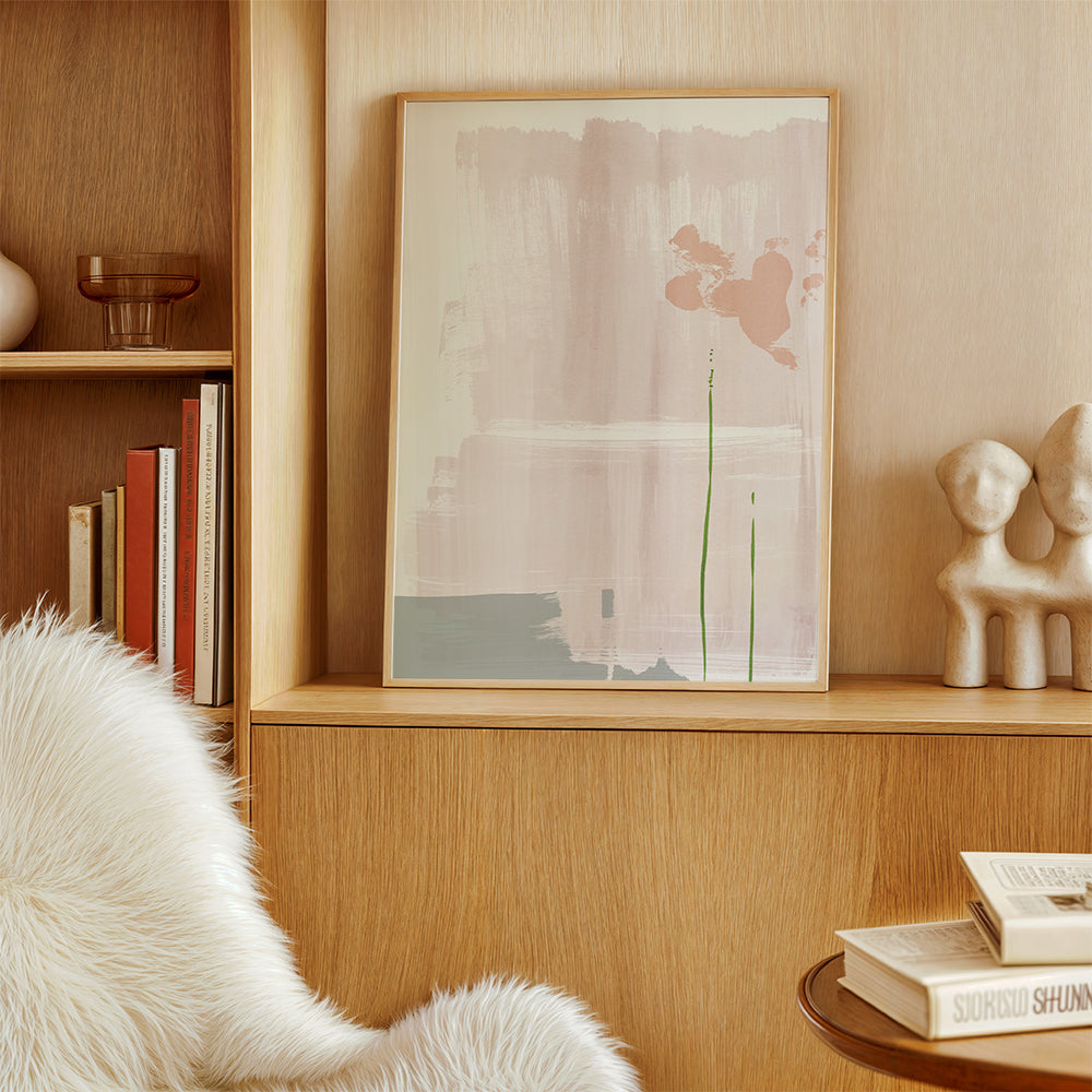 Una immagine ispirato alla collezione di quadri astratti, di Nouveau Prints, con dei tocchi rose, e con posizione verticale. Le tele e stampe di arte astratta rimarcano l'originalità degli ambienti. Di' addio alle pareti spoglie e senza carattere.