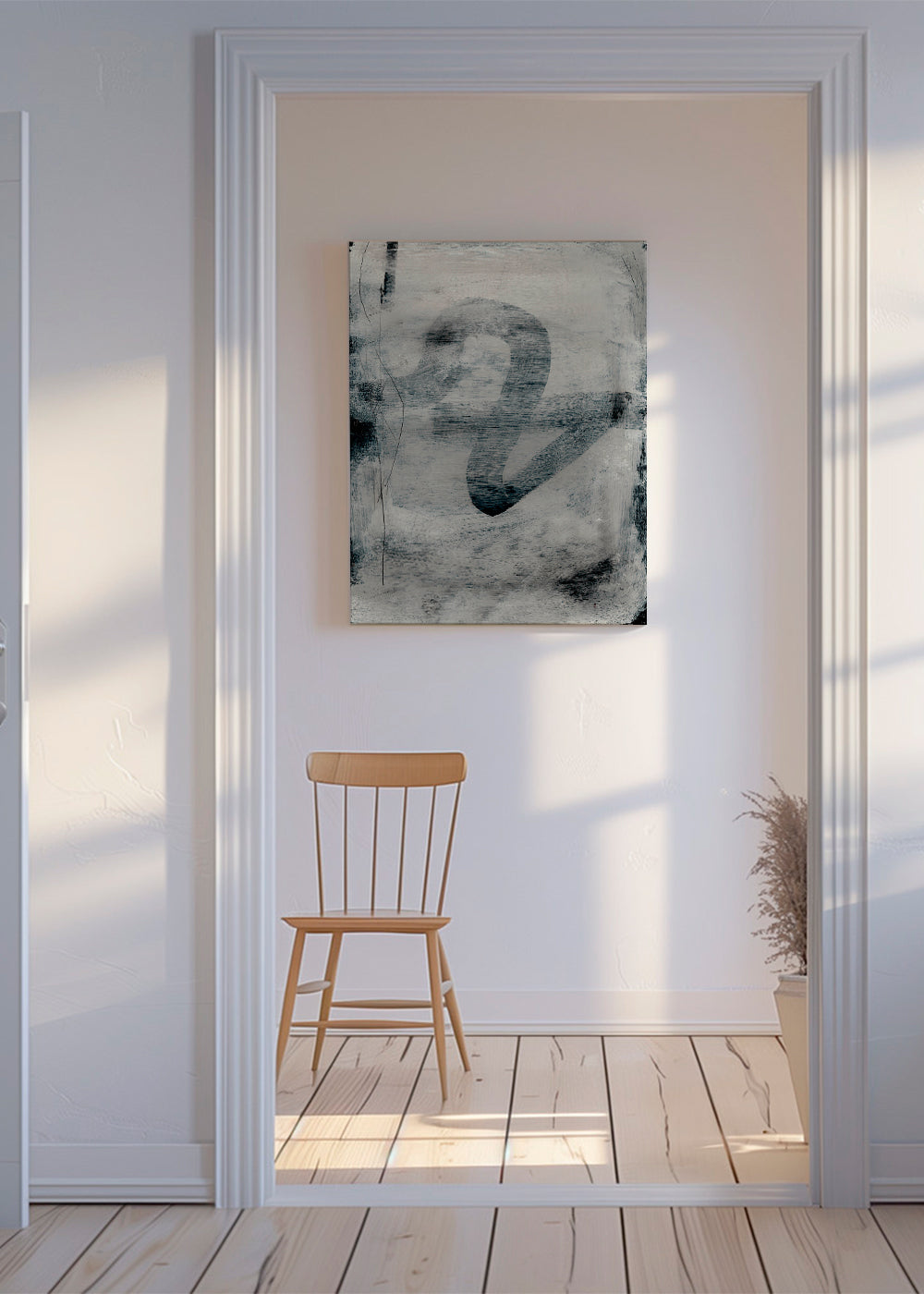 Una immagine della nostra collezione di quadri geometrici, realizzata da 1x, con pigmenti grigio, e con posizione verticale. L'arte geometrica è uno stile raffinato per la decorazione delle pareti di casa. Le pareti decorate con i quadri sono il non plus ultra.