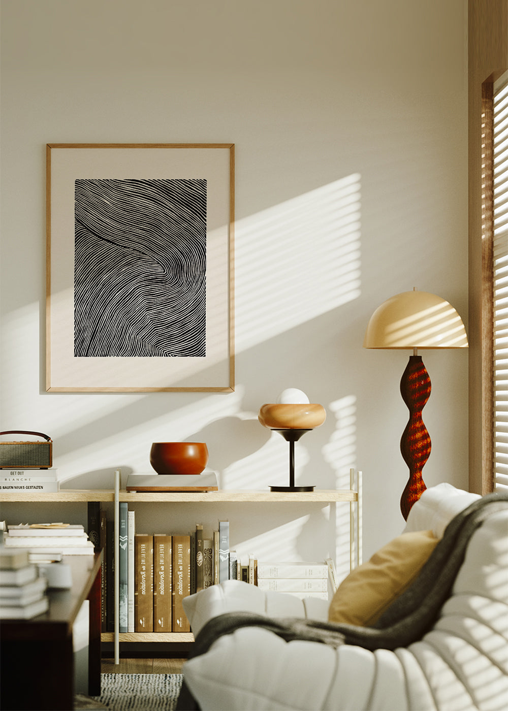 Bello quadro della serie di illustrazioni per quadri e stampe, ideata da Nouveau Prints, con dei tocchi nero, e nel formato verticale. Si tratta di un'illustrazione semplice e pulita, che puoi abbinare ad altre illustrazioni per realizzare una composizione artistica. Costruisci il tuo angolo preferito.