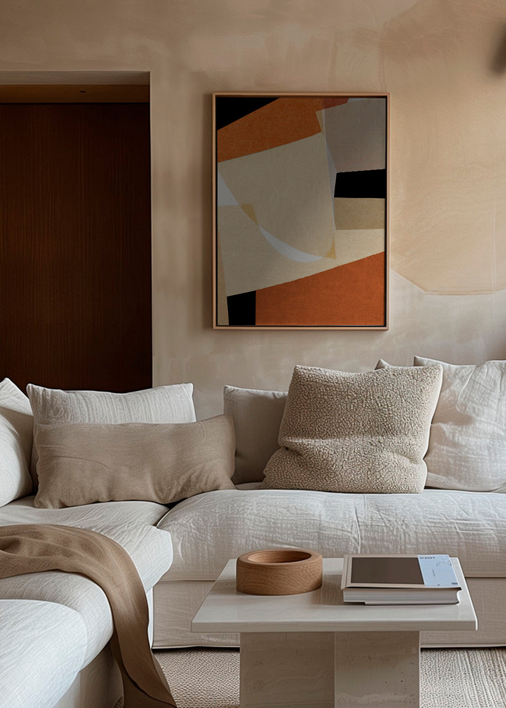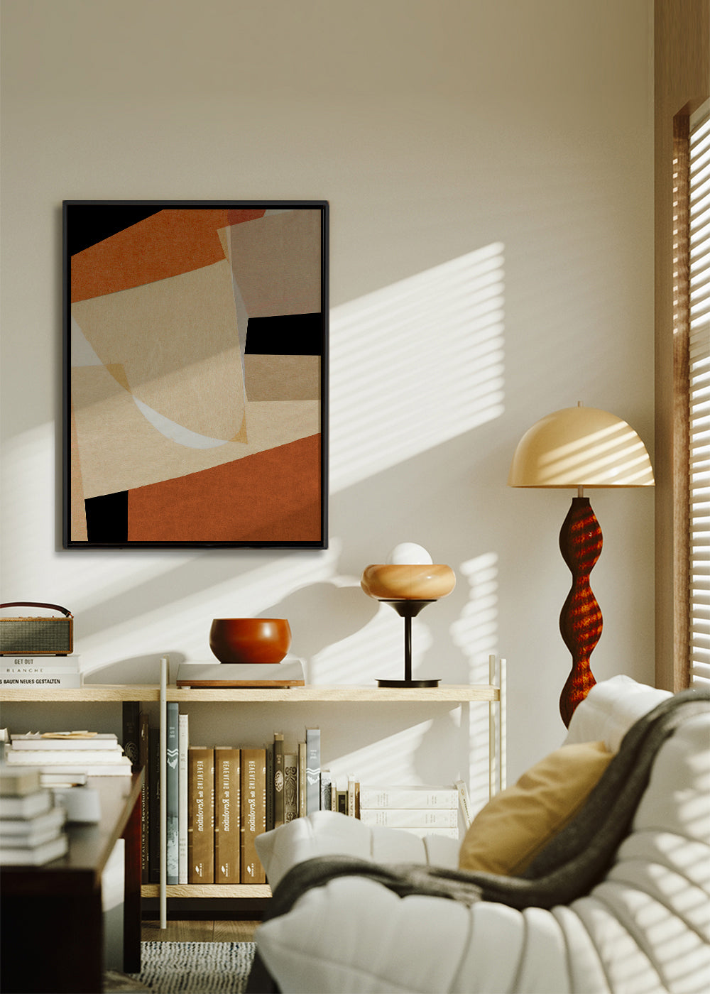 Bella pieza nello stile dei nostri quadri geometrici, realizzata da 1x, con tonalità di colori marroni, e ideale da mettere in posizione verticale. Le forme geometriche e astratte contribuiscono a creare un ambiente spensierato e creativo. Lascia che l'arte riempia la tua casa.