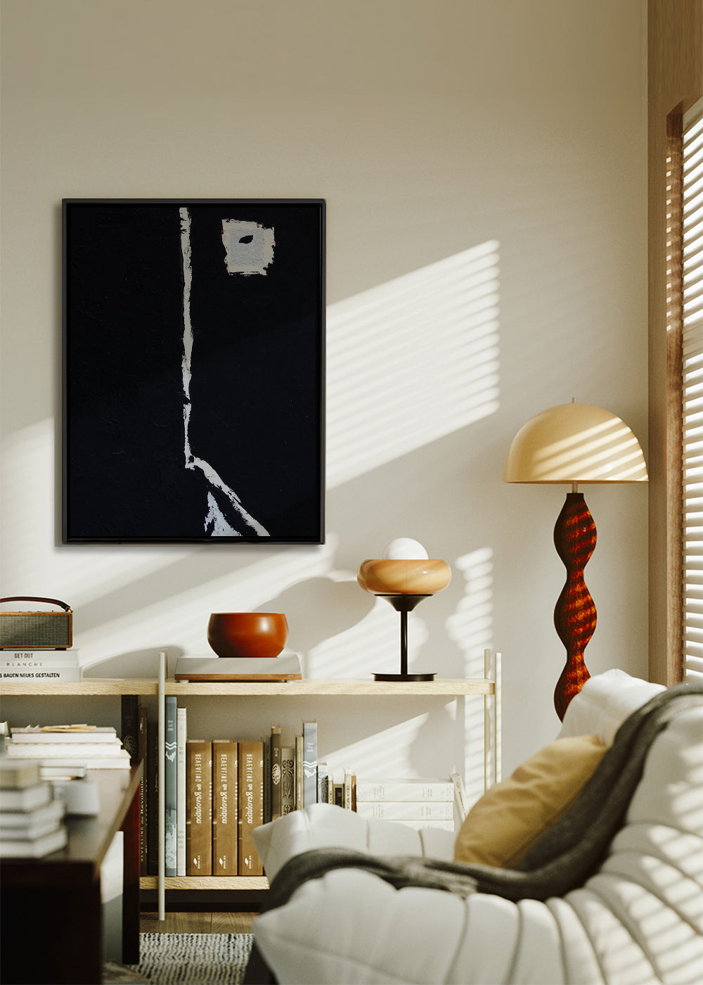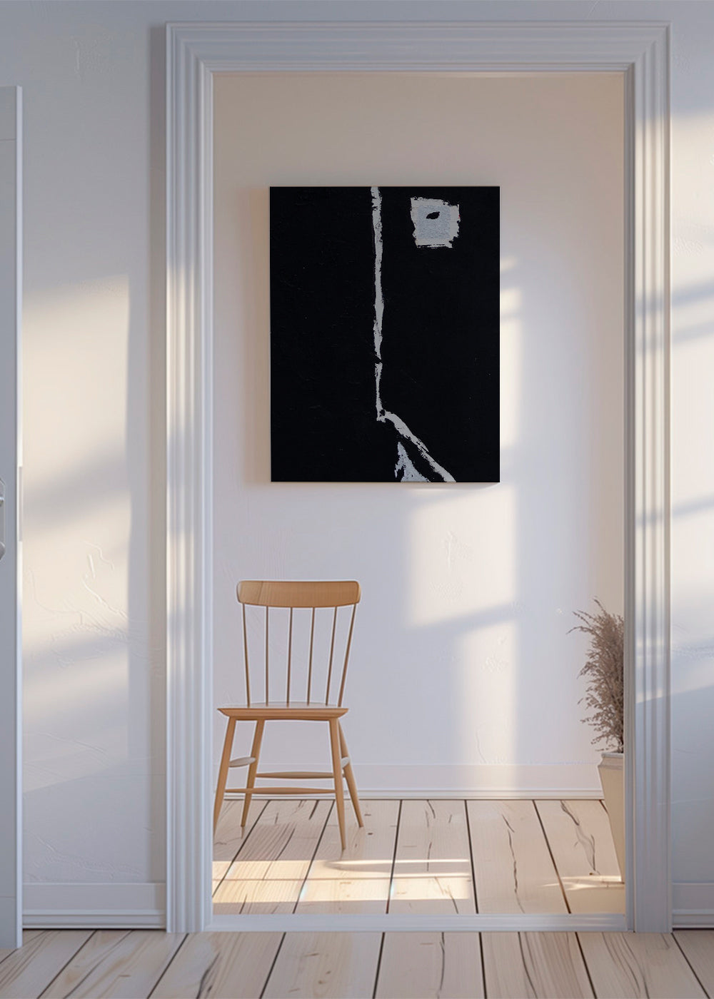 Una stampa della collezione quadri in bianco e nero, realizzata da Elena Camacho Art, dalle sfumature monocromatico, e con disposizione verticale. I quadri astratti sono l'ideale per creare spazi originali e creativi. Il quadro che quella parete sta aspettando.