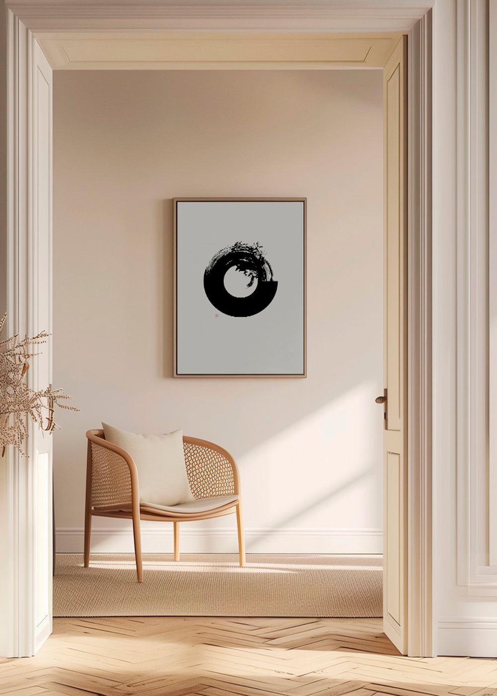 Questa stampa è ispirata alla nostra collezione di quadri giapponesi, di Thoth Adan, con pigmenti monocromatici e in formato verticale. Le forme geometriche e le forme astratte aiutano a creare un'atmosfera casual e creativa. Un tocco moderno per la tua casa.