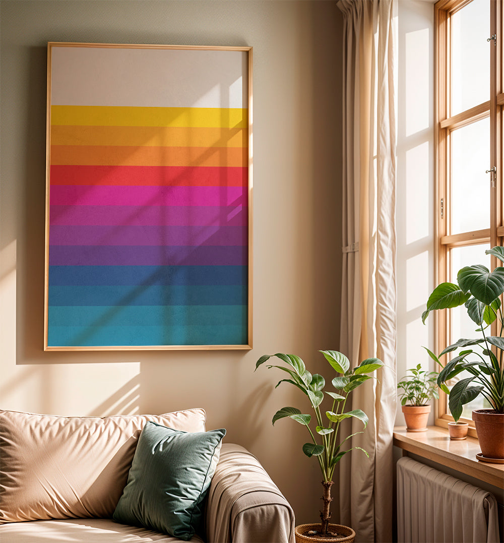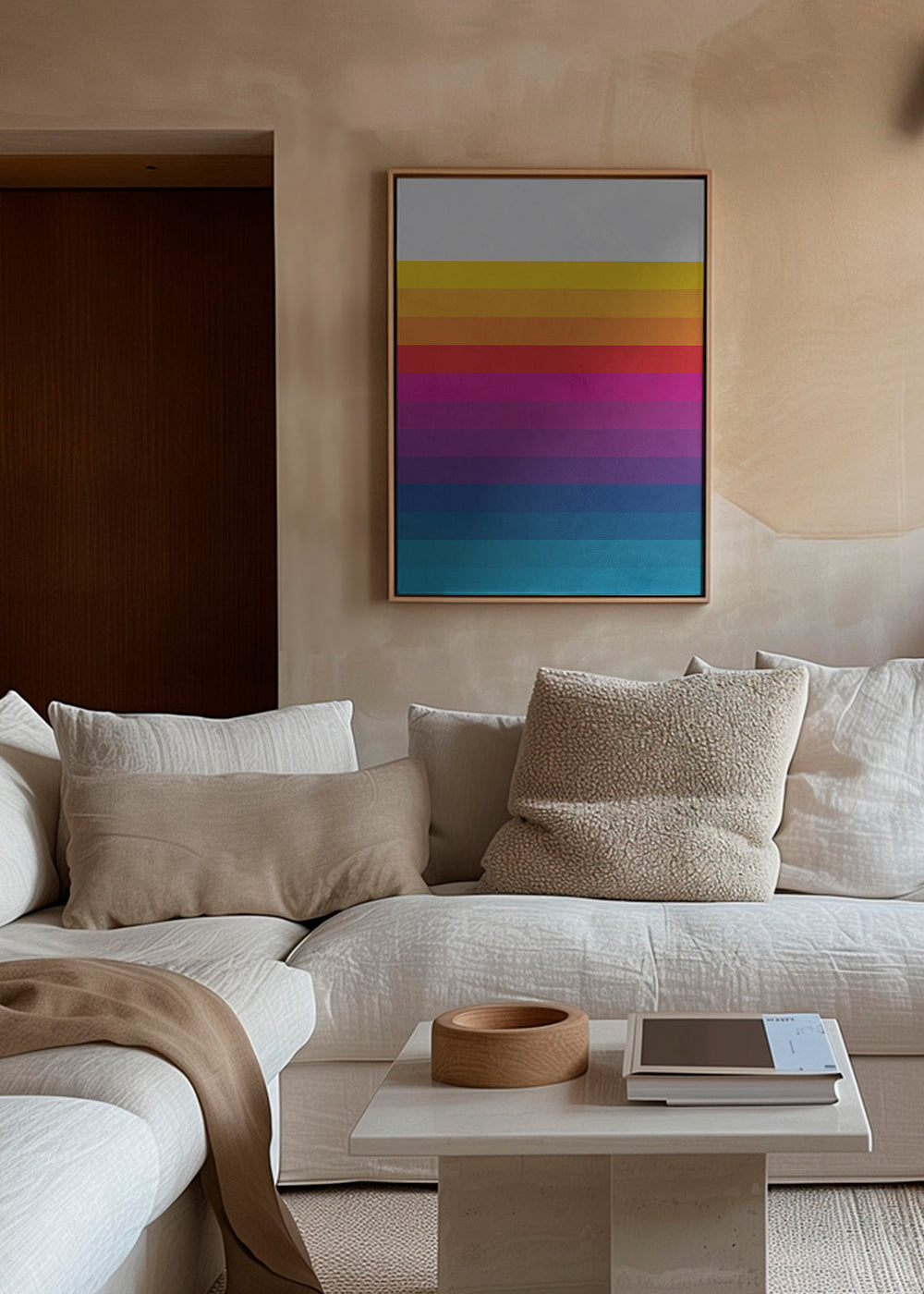 Una opera ispirato alla collezione di quadri geometrici, di Seven Trees Design, con dei tocchi multicolore, e da formato verticale. Le forme geometriche e astratte contribuiscono a creare un ambiente spensierato e creativo. Eleganza ispirata all'arte.