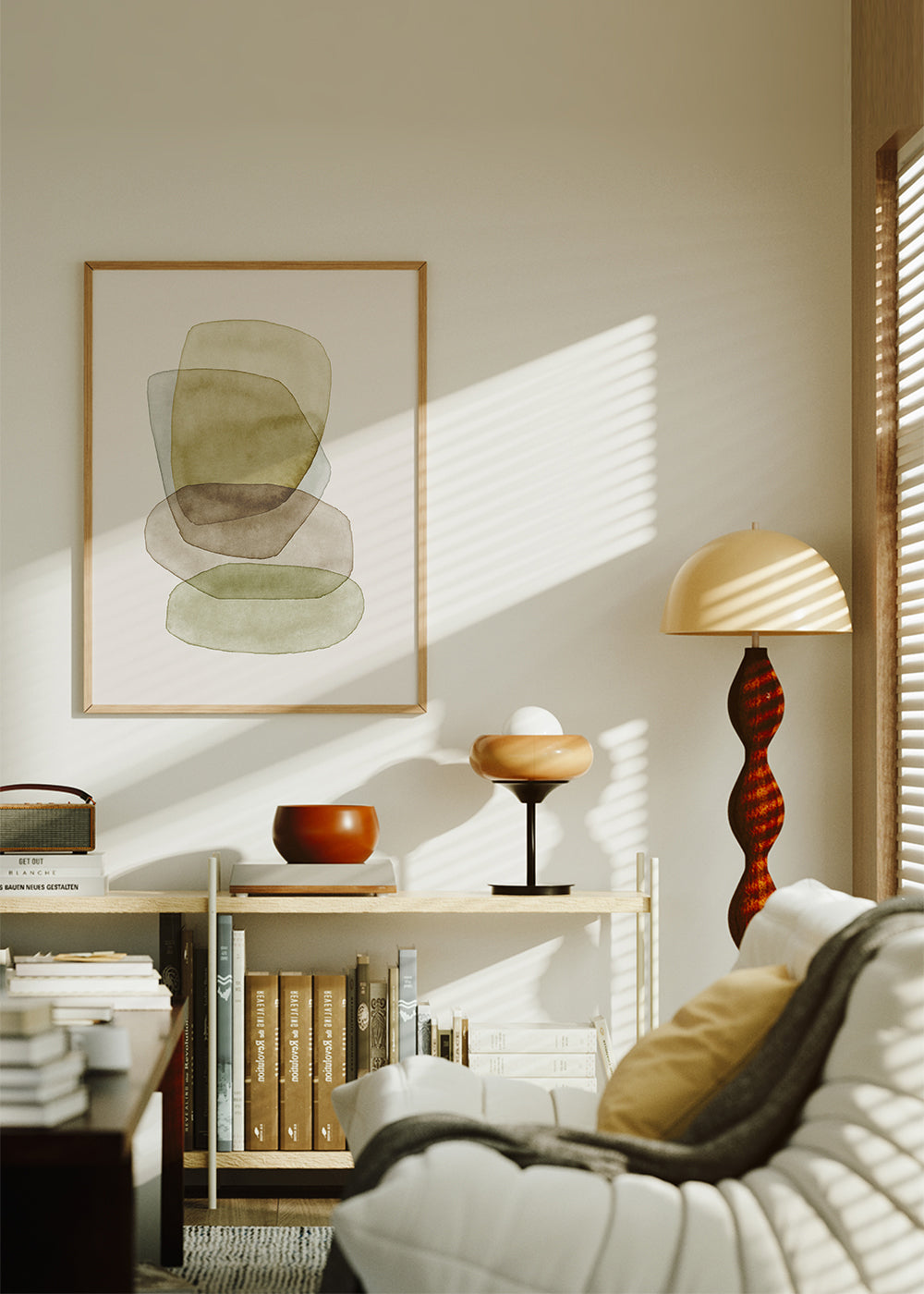 Una immagine della nostra categoria di quadri geometrici, di Nouveau Prints, sui toni marroni, e da appendere in posizione verticale. Le forme geometriche e astratte contribuiscono a creare un ambiente spensierato e creativo. Crea l'ambiente perfetto.