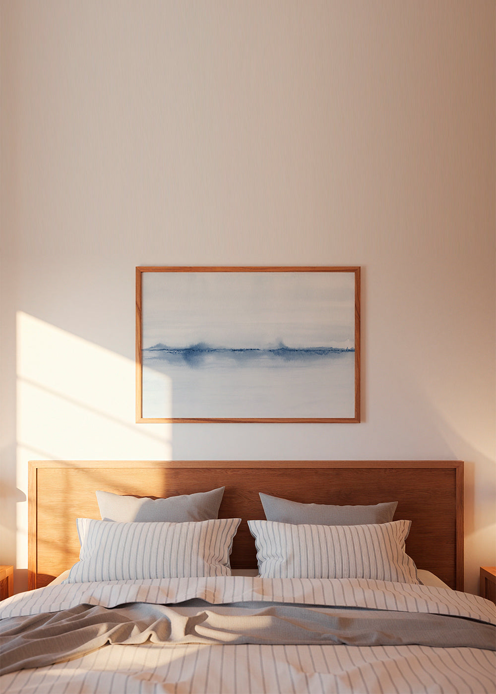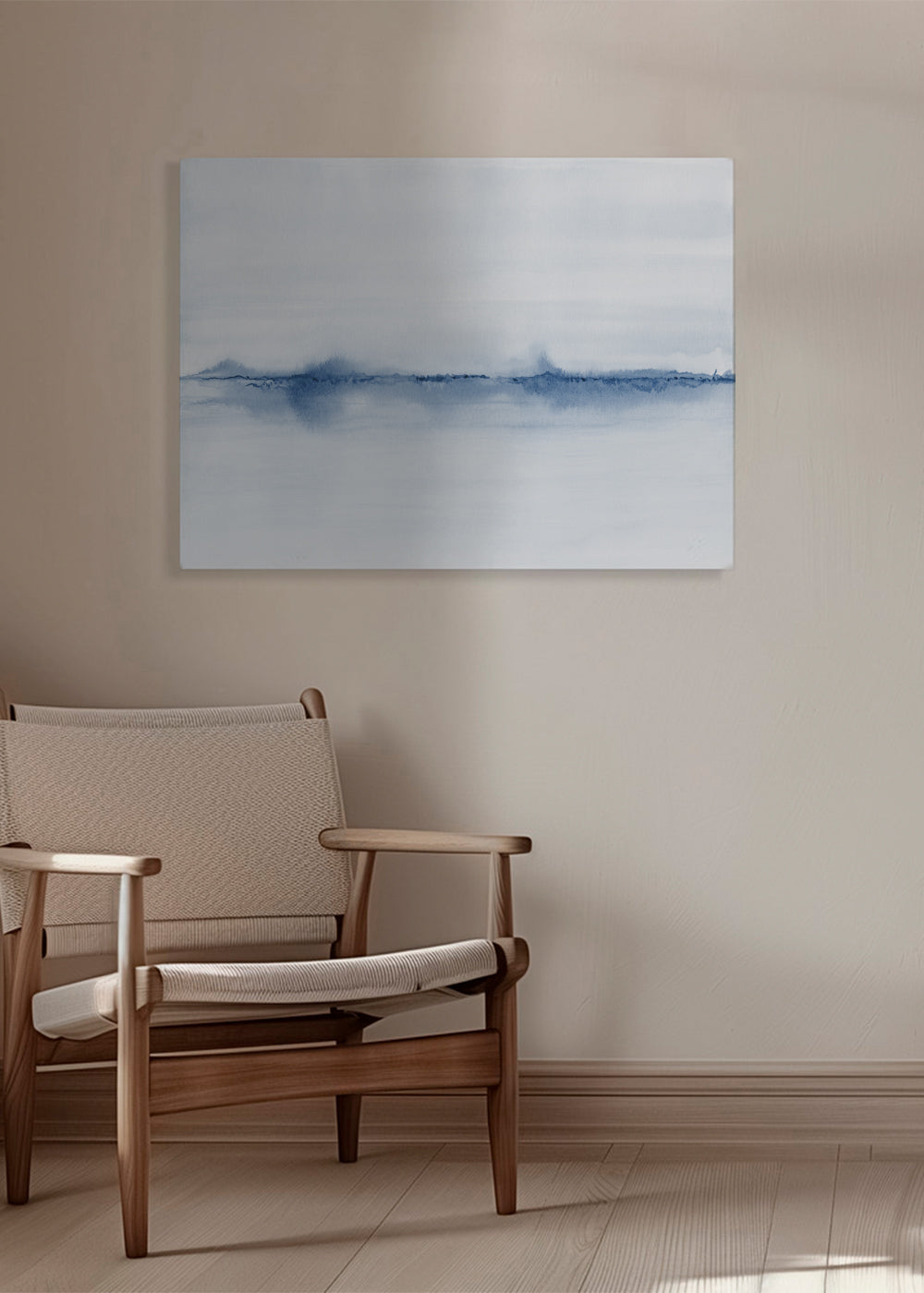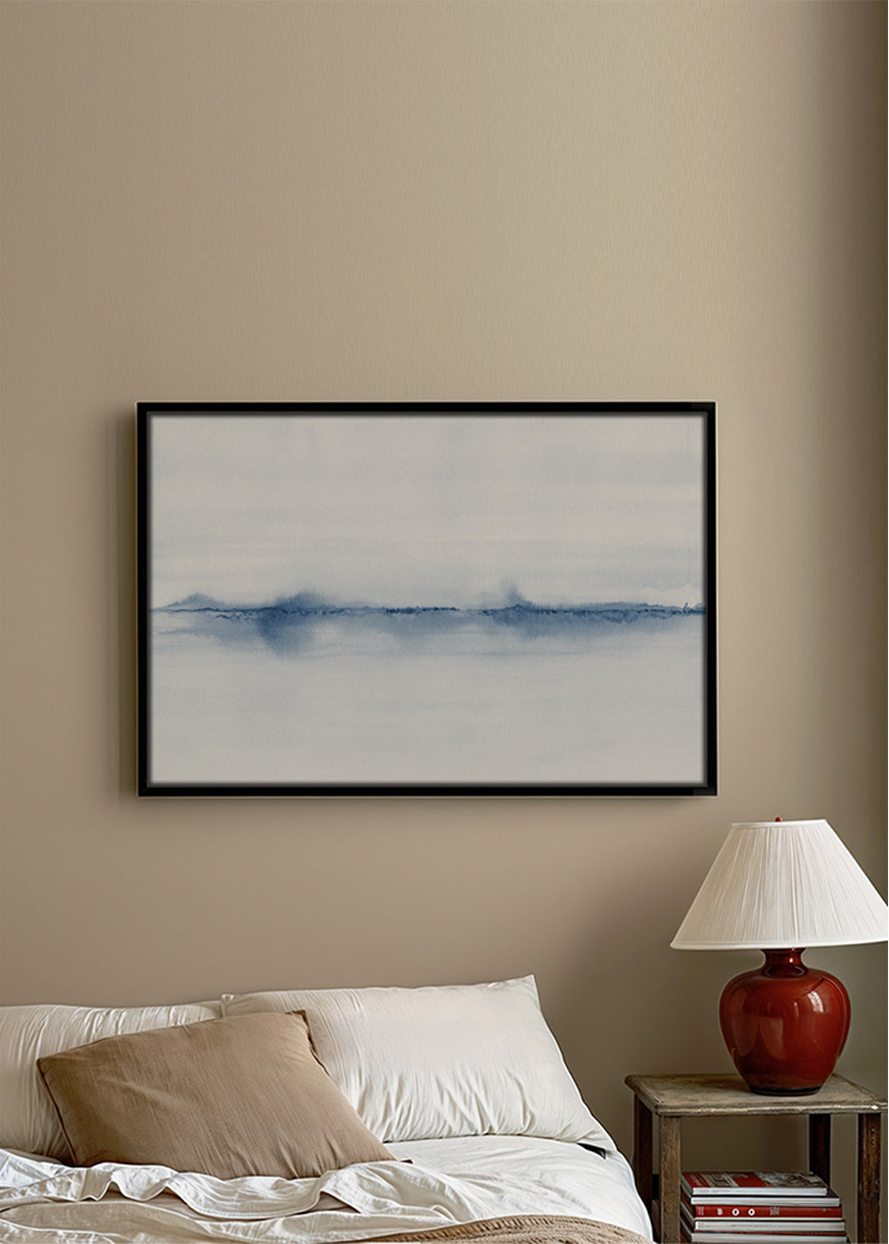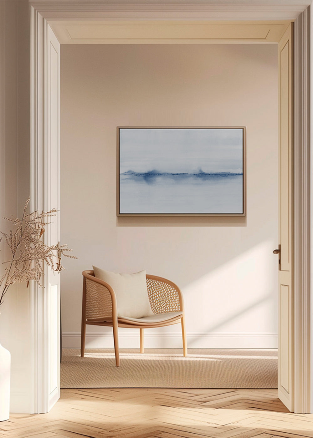 Bello design della nostra collezione di quadri di paesaggi e natura, dell'artista Nouveau Prints, con sfumature dai toni blu, e ideale da mettere in posizione orizzontale. La tranquillità e il senso di libertà che trasmettono i quadri di paesaggi sono unici. Le pareti decorate con i quadri sono il non plus ultra.