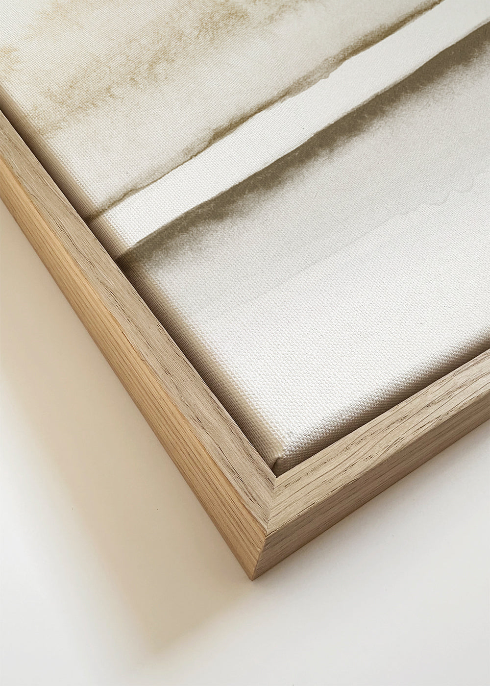 Le cornici in legno fino a 50x70 (compreso) hanno una larghezza di 1,5 cm e una profondità di 3 cm, mentre in quelle più grandi la larghezza è di 2 cm e una profondità di 3 cm.