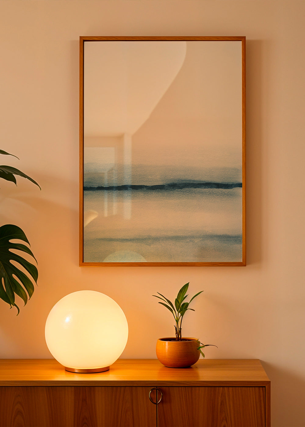 Per evitare rotture, le nostre cornici incorporano vetro acrilico al posto del vetro. Il vetro acrilico riproduce l'effetto del vetro, ma evita possibili danni durante il trasporto o il posizionamento della cornice.