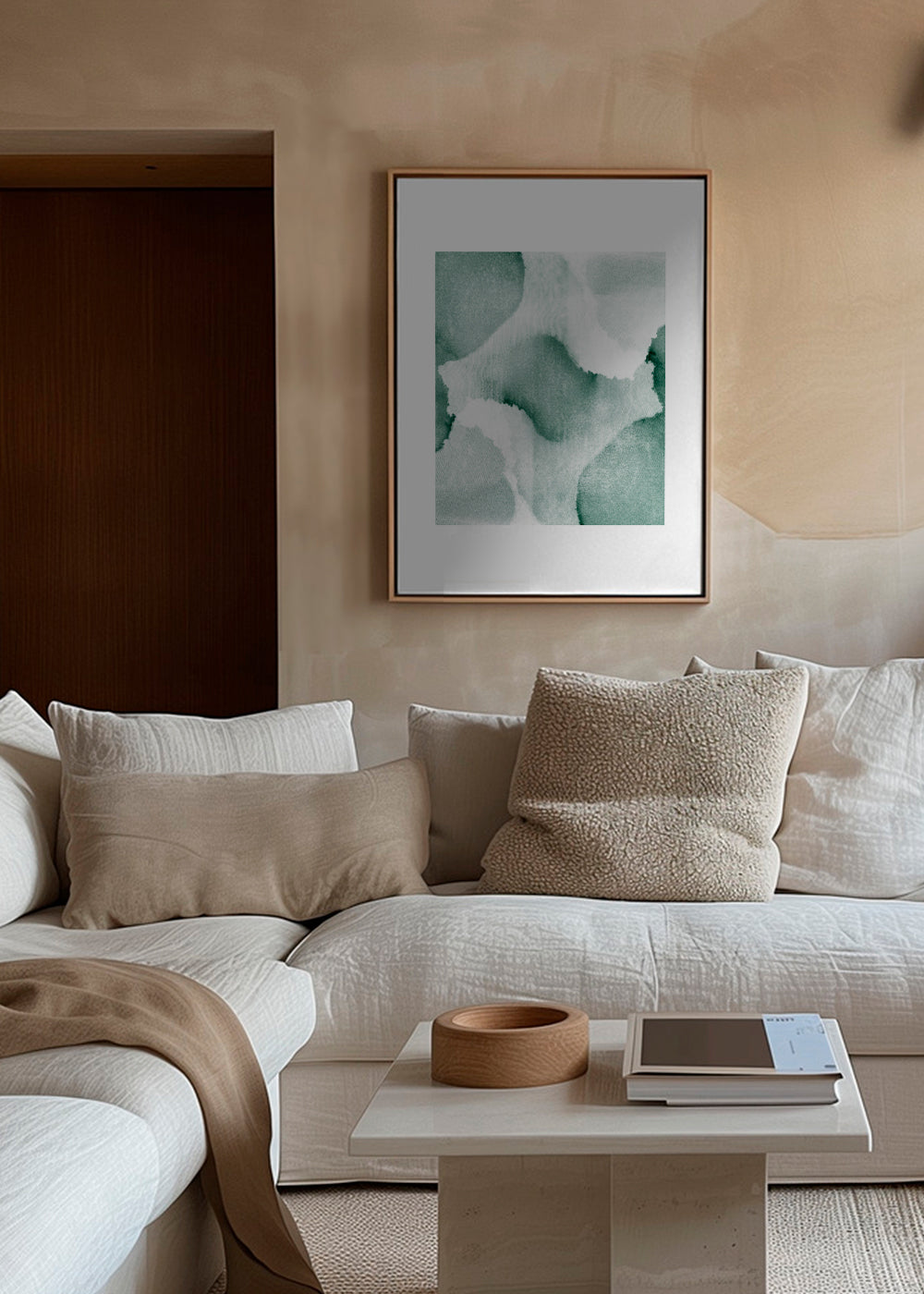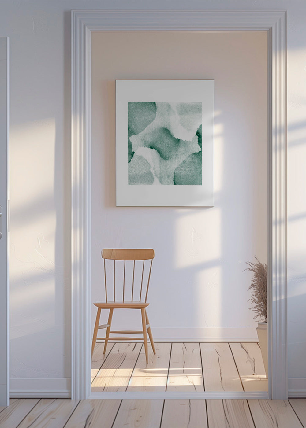 Questa opera della nostra categoria di quadri a pennello, realizzata da Anna Mainz, con colori verdi, e nel formato verticale. I quadri astratti rendono più moderno qualunque ambiente e danno un aspetto incredibilmente chic all'arredamento. Cambia il look dei tuoi ambienti con un tocco artistico. L'immagine include un margine bianco che fa da contrasto all'opera e la valorizza.