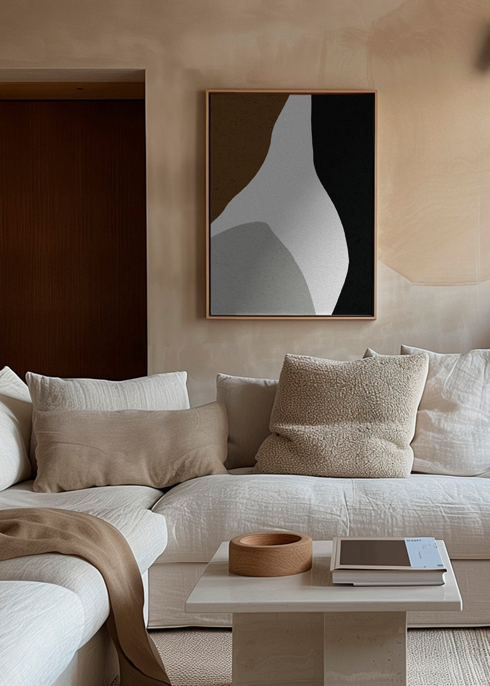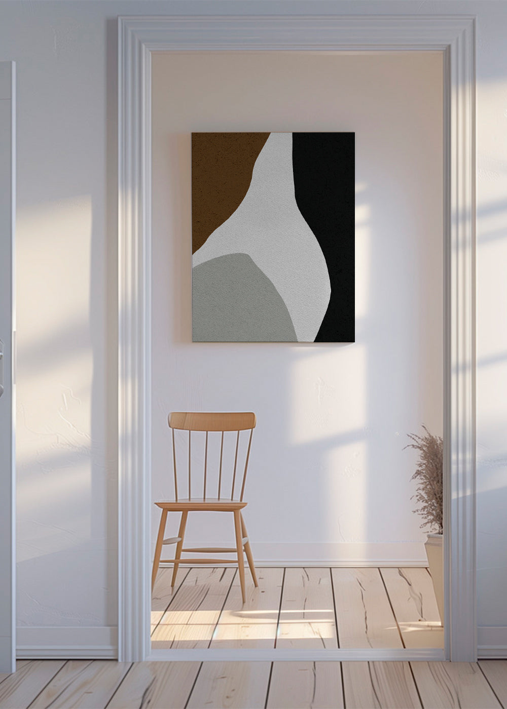 Un quadro della nostra selezione di quadri geometrici, dell'artista U + Me Studio, con toni grigio, e da formato verticale. L'arte geometrica è uno stile raffinato per la decorazione delle pareti di casa. Cambia il look dei tuoi ambienti con un tocco artistico.