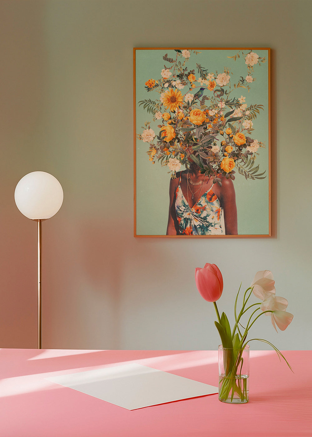 Bella opera della nostra collezione di quadri di donne, della collezione dell'artista Frank Moth, con tonalità di colori verdi, e da formato verticale. Se sei alla ricerca di un complemento retrò da aggiungere al tuo home decor, questo design è perfetto per te. Abbinalo ad altri poster in stile vintage per creare uno stile davvero originale. Realizza un home decor ricco di arte.
