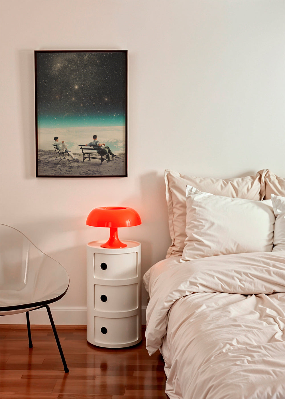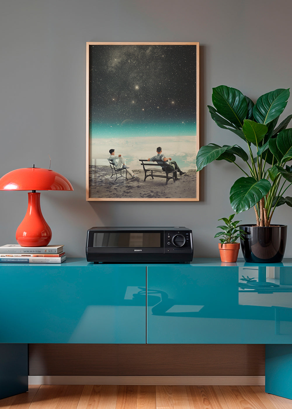Questa stampa dal nostro repertorio di quadri vintage e stampe retrò , creata da Frank Moth, con tonalità di colori blu, e con orientamento verticale. Un'opera dallo stile retrò ideale per un home decor dai tocchi vintage. Crea angoli speciali.