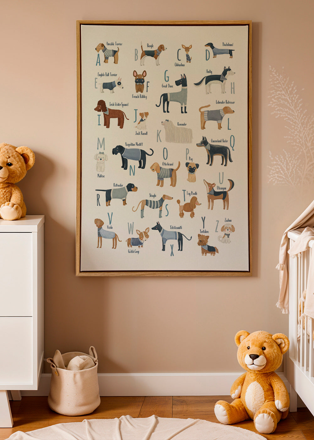 Quadro per bambini Abecedario con perros (azul)