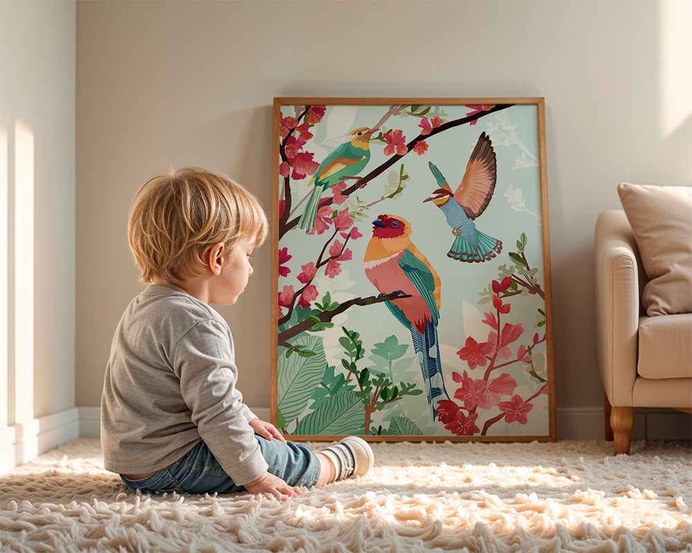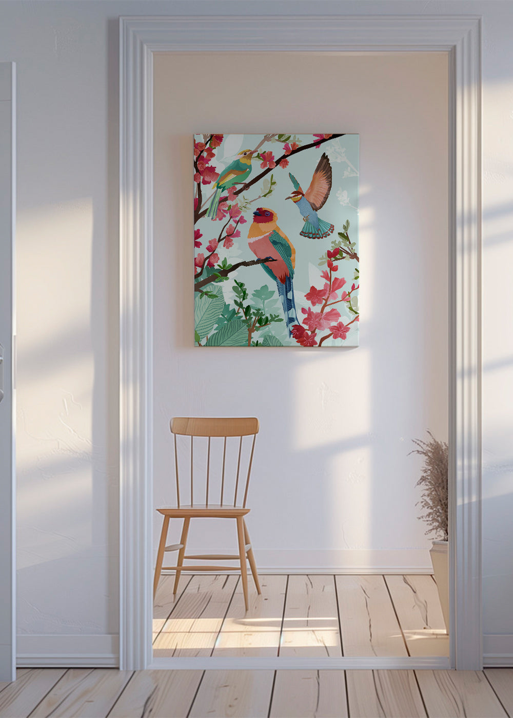 Questa pieza dal nostro repertorio di quadri con uccelli, dell'artista Goed Blauw, con colori multicolore, e con disposizione verticale. Le stampe di animali ci consentono di mostrare il nostro lato più selvaggio attraverso la decorazione delle pareti. Dai un tocco artistico al tuo home decor.