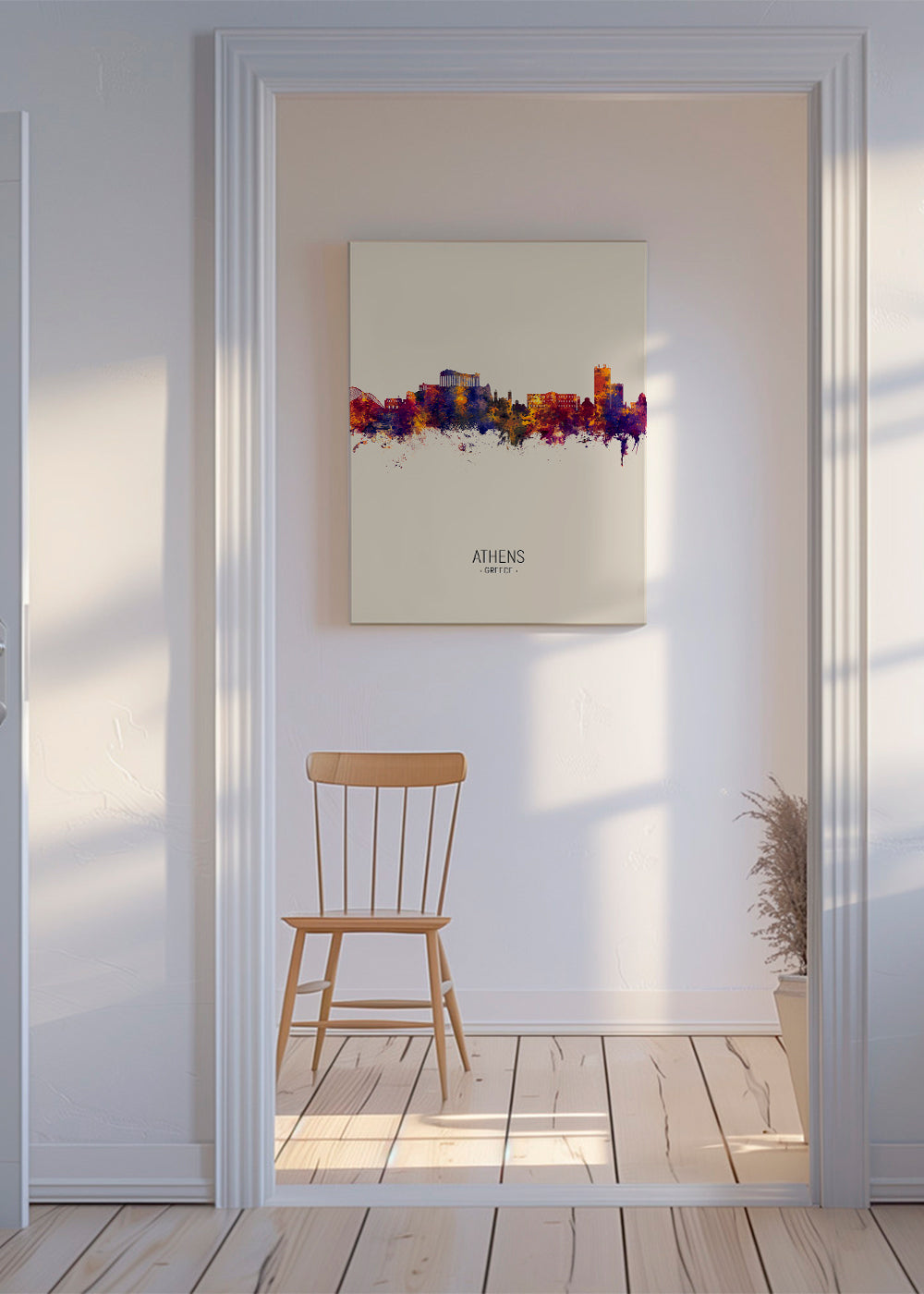 Bello quadro nello stile dei nostri quadri con skyline, della collezione dell'artista Michael Tompsett, sui toni multicolore, e con orientamento verticale. Se ami passare ore e ore a girovagare senza meta alla scoperta di nuovi angoli di mondo, questo è il quadro che fa per te. Pareti traboccanti di creatività.