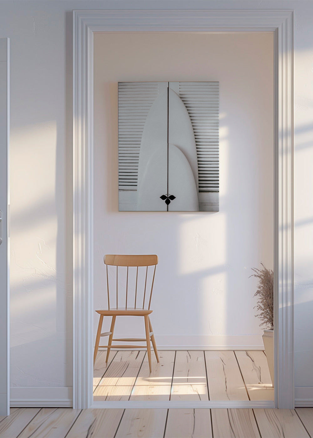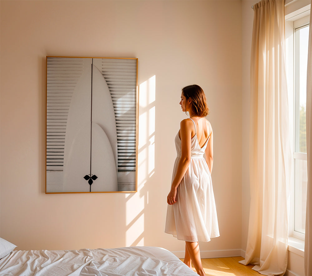 Quadro in bianco e nero Beach surfboard symetrie 1