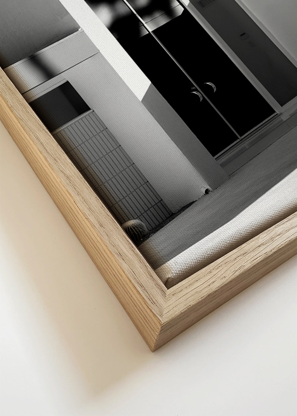 Per evitare rotture, le nostre cornici incorporano vetro acrilico al posto del vetro. Il vetro acrilico riproduce l'effetto del vetro, ma evita possibili danni durante il trasporto o il posizionamento della cornice.