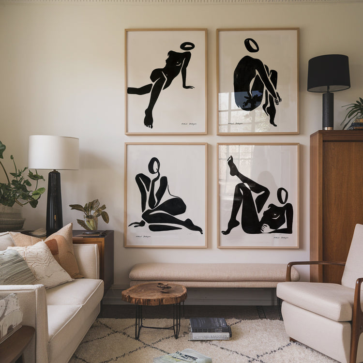 Un quadro della nostra collezione di quadri di donne, dell'artista Astrid Babayan, sui toni monocromatico, e orientata in senso verticale. I quadri con illustrazioni sono perfetti da abbinare all'arte minimal e all'arte astratta. Crea un angolo unico.