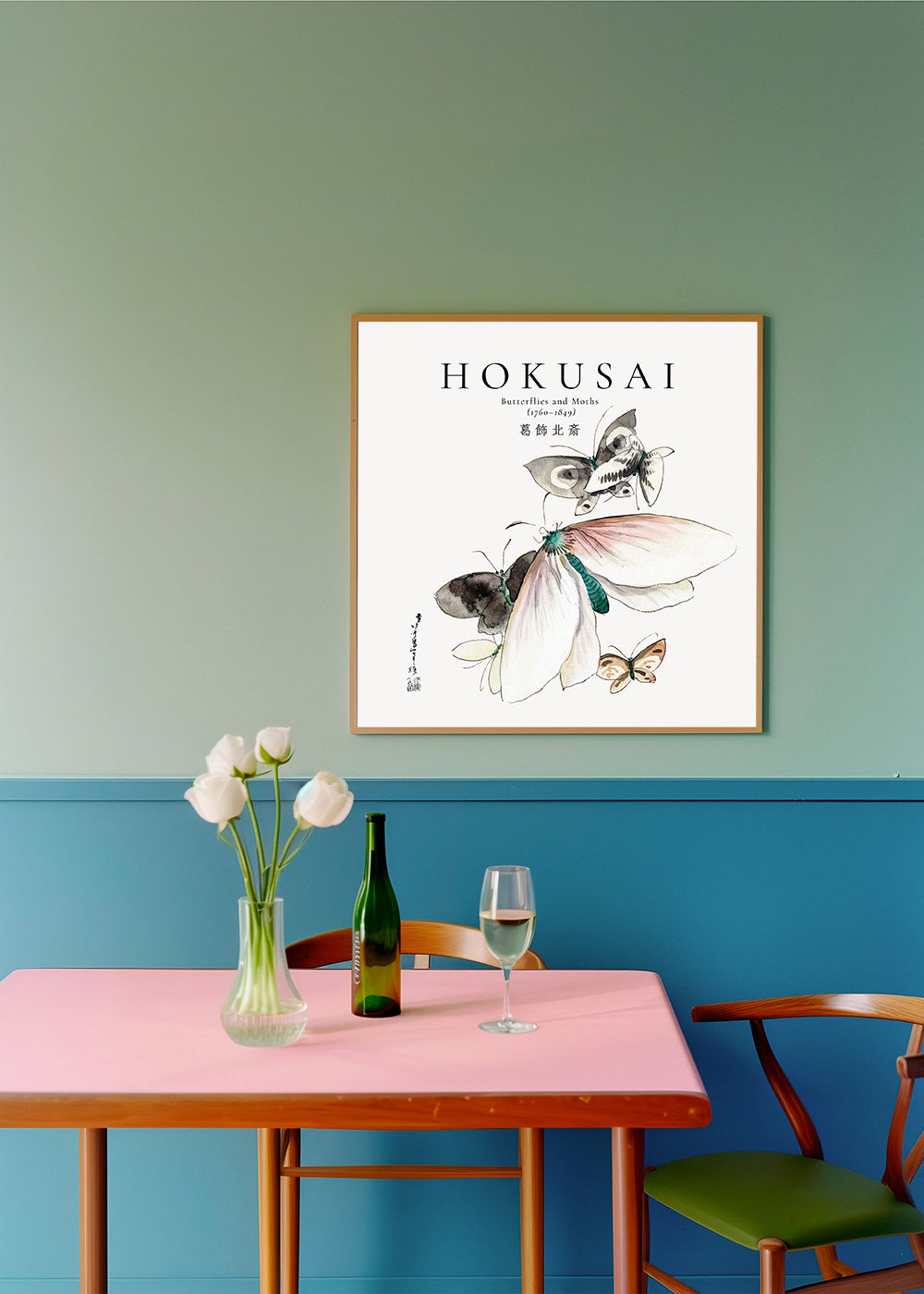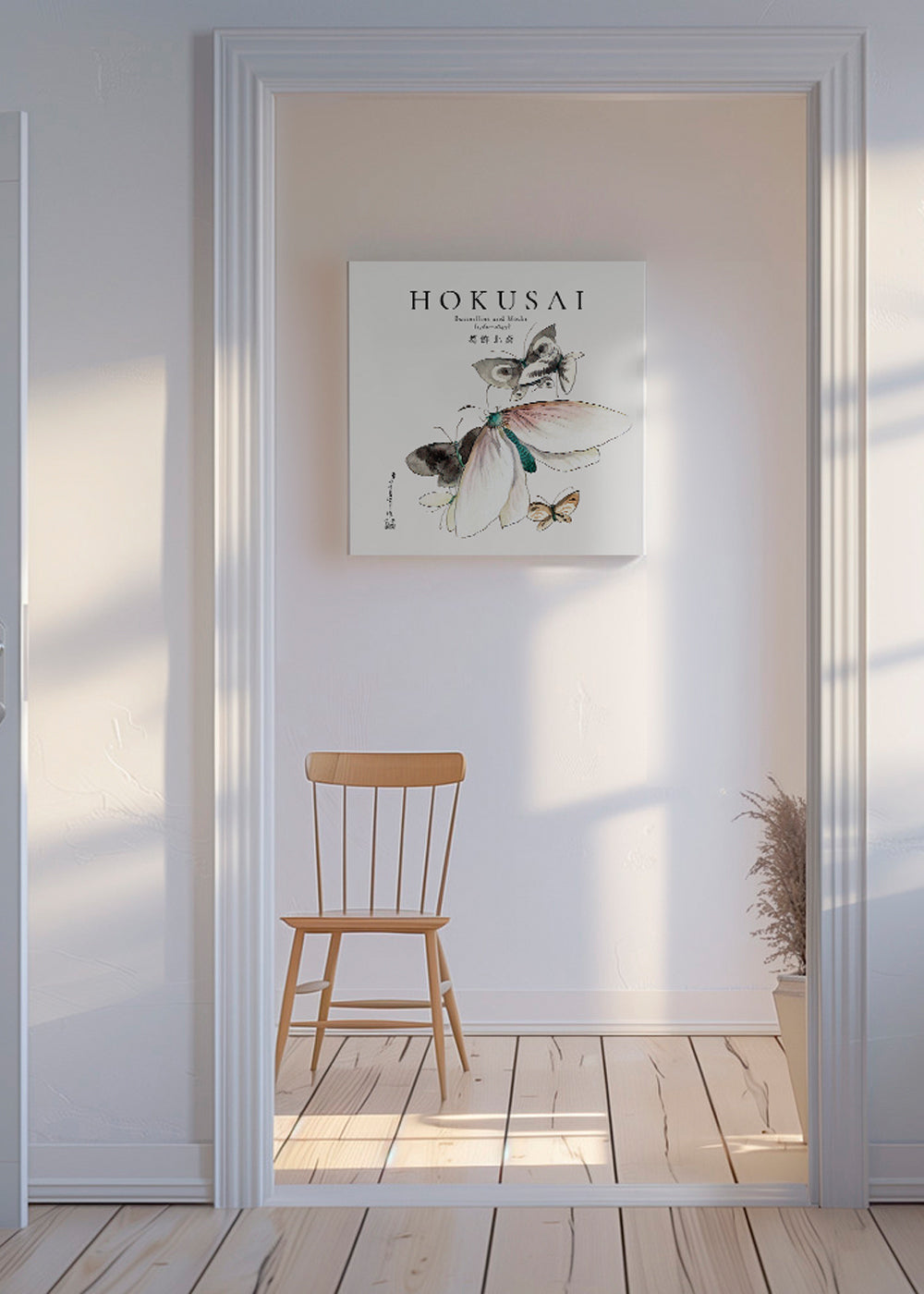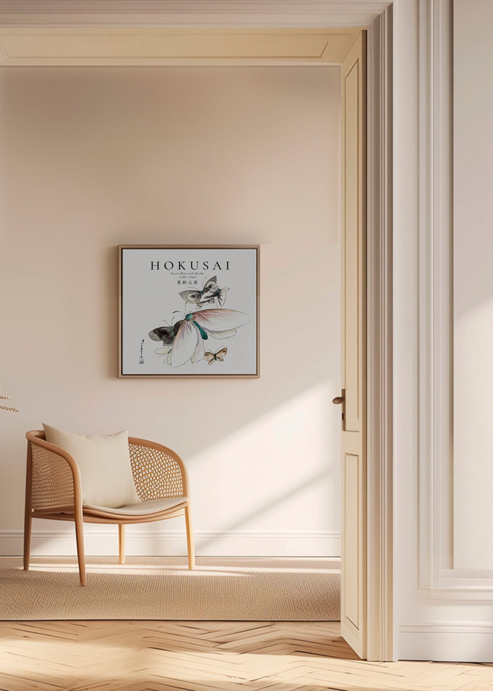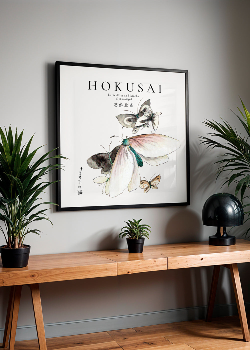 Quadro in bianco e nero Butterflies and Moths by Katsushika Hokusai - Square