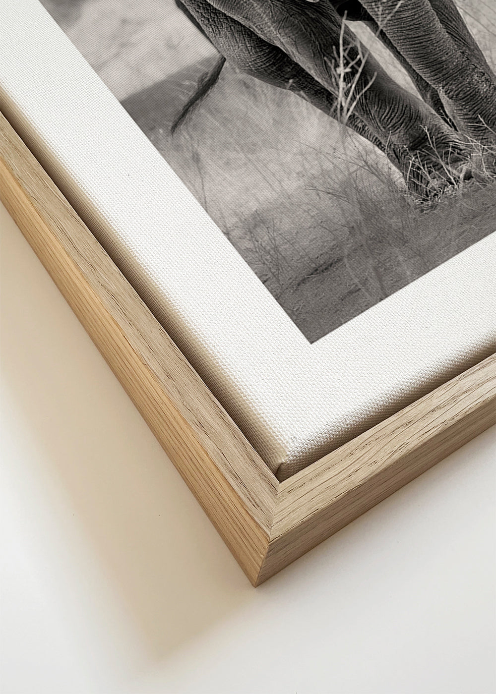 Per evitare rotture, le nostre cornici incorporano vetro acrilico al posto del vetro. Il vetro acrilico riproduce l'effetto del vetro, ma evita possibili danni durante il trasporto o il posizionamento della cornice.