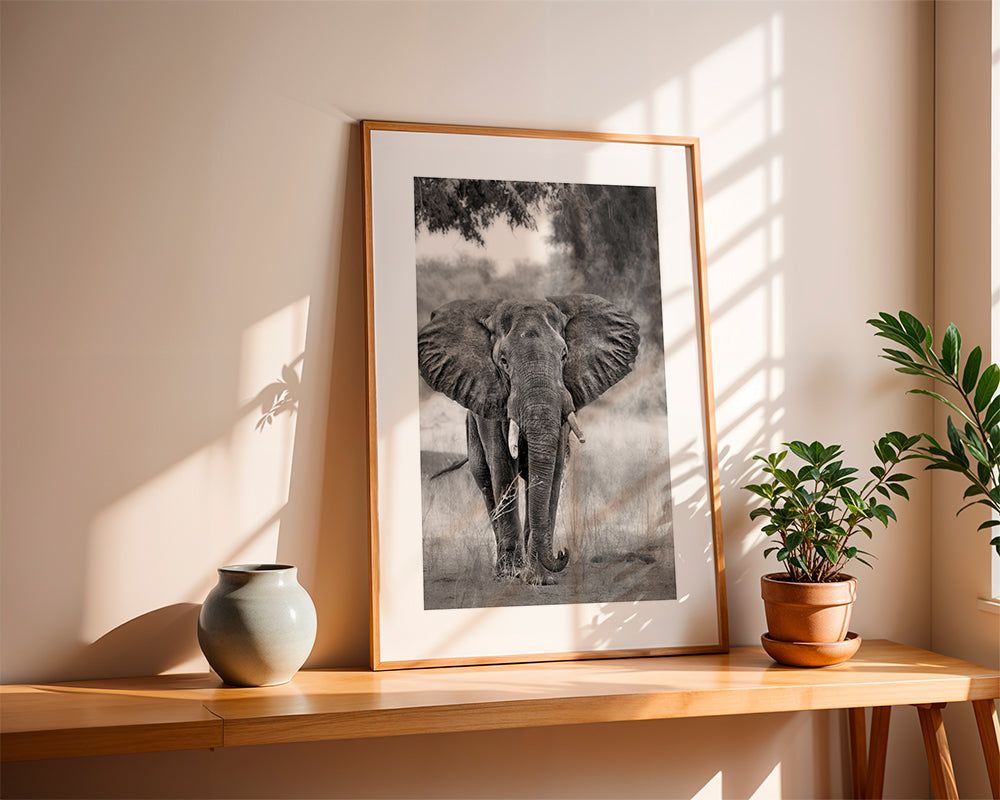 Bello quadro della collezione quadri con elefante, della collezione dell'artista 1x, con sfumature dai colori monocromatico, e con orientamento verticale. Le stampe di animali ci consentono di mostrare il nostro lato più selvaggio attraverso la decorazione delle pareti. Un tocco moderno per la tua abitazione. Quest'opera include un margine bianco che incornicia l'immagine e ne valorizza lo stile.