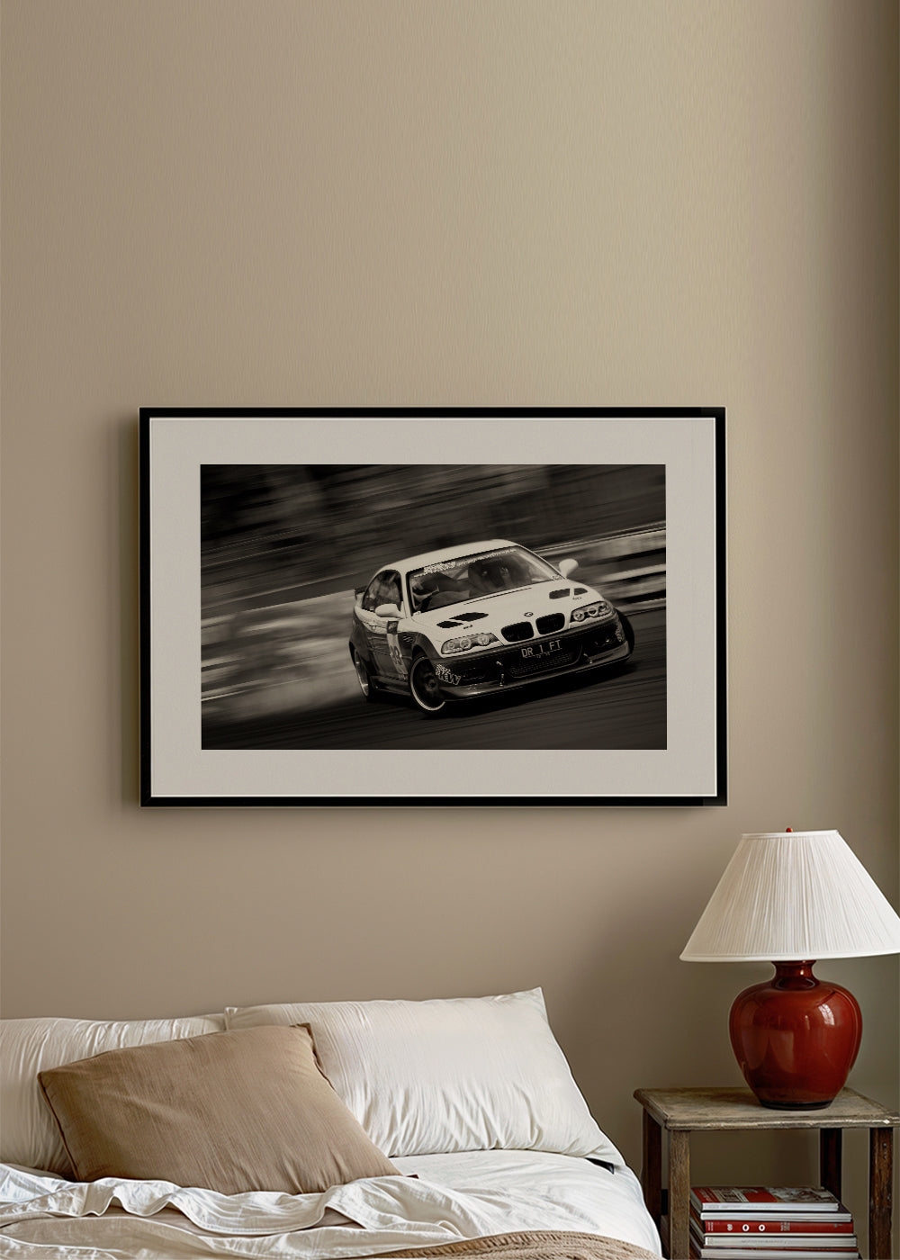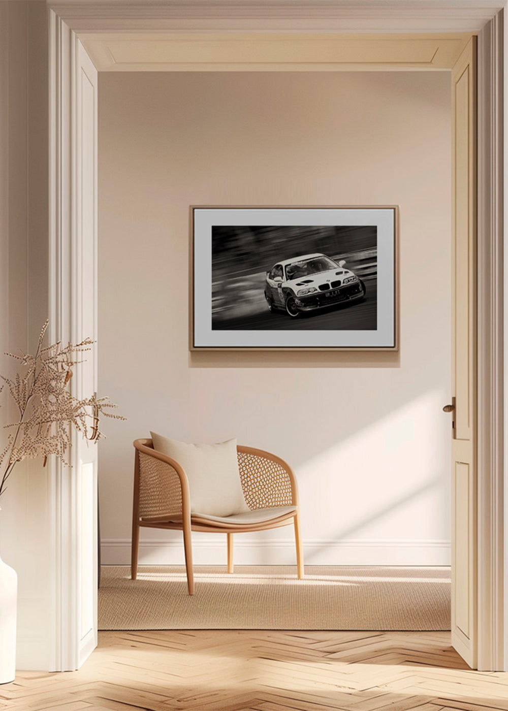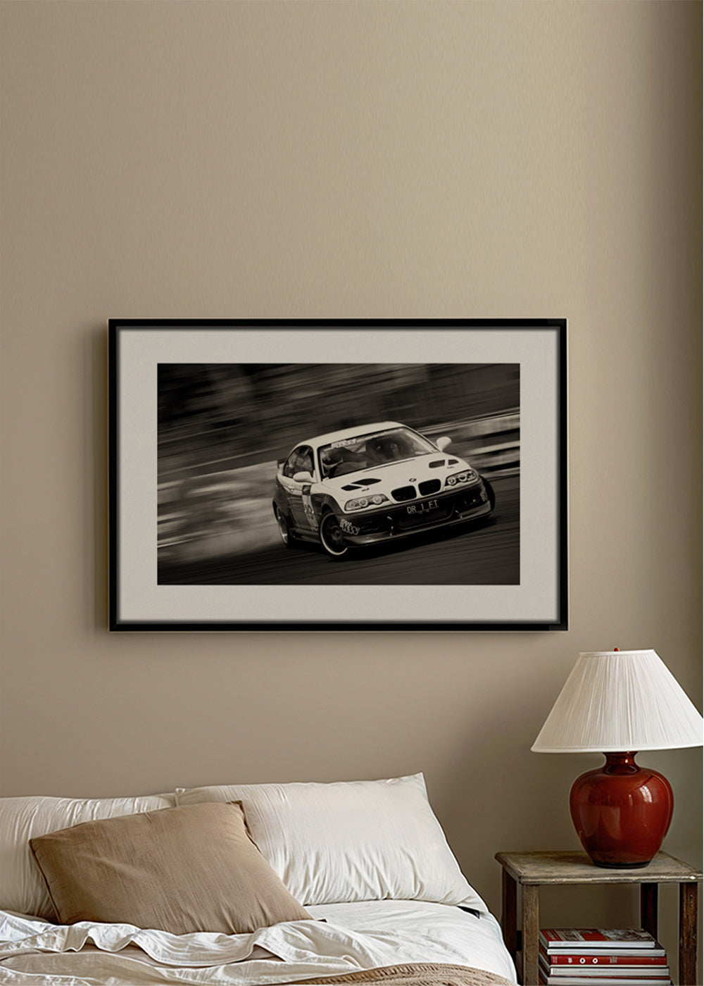 Un design della serie di quadri con auto, realizzata da 1x, con toni monocromatico, e con orientamento orizzontale. Una fotografia perfetta per dare un tocco di originalità alle tue pareti, assieme ad altre foto da incorniciare. Freschezza e originalità. L'immagine include un margine bianco che fa da contrasto all'opera e la valorizza.