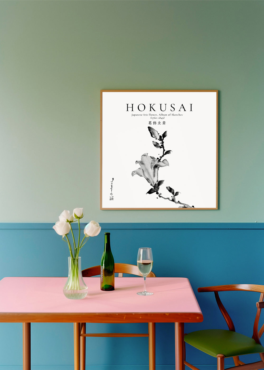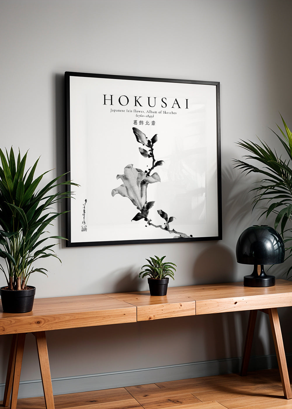 Quadro in bianco e nero Japanese Iris flower by Katsushika Hokusai - Square