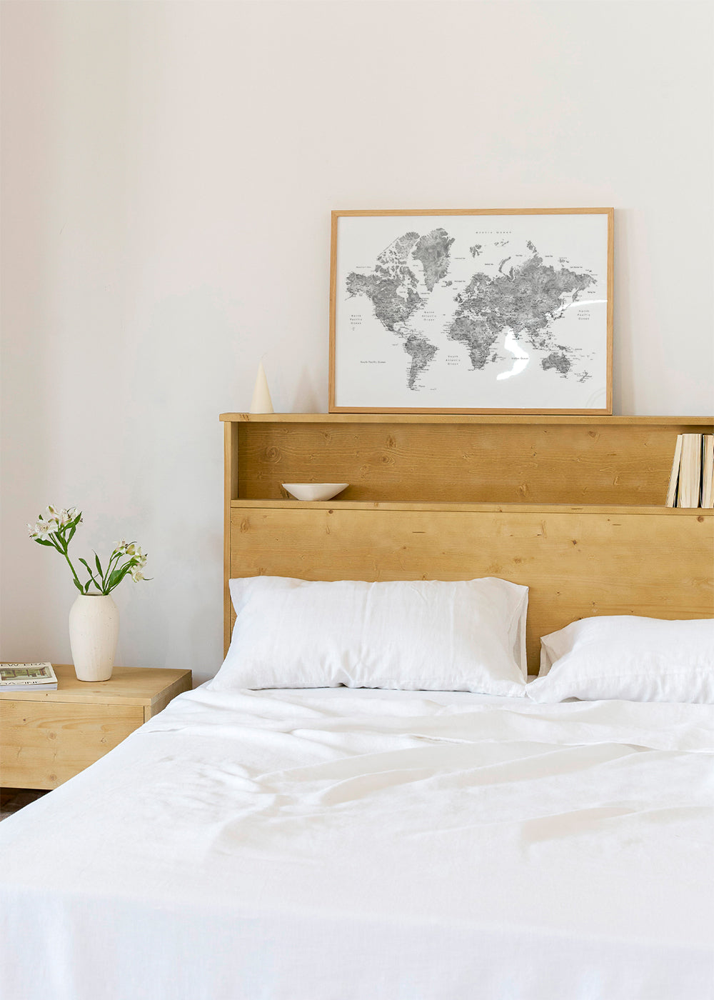 Quadro in bianco e nero Jimmy detailed world map with cities