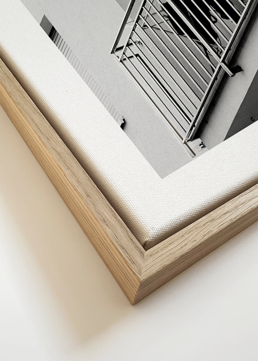 Tutti i nostri telai sono prodotti in Spagna. I telai bianco, nero e rovere sono realizzati in legno di Ayous, quelli in rovere sono impiallacciati in rovere, mentre quelli metallici sono in alluminio.