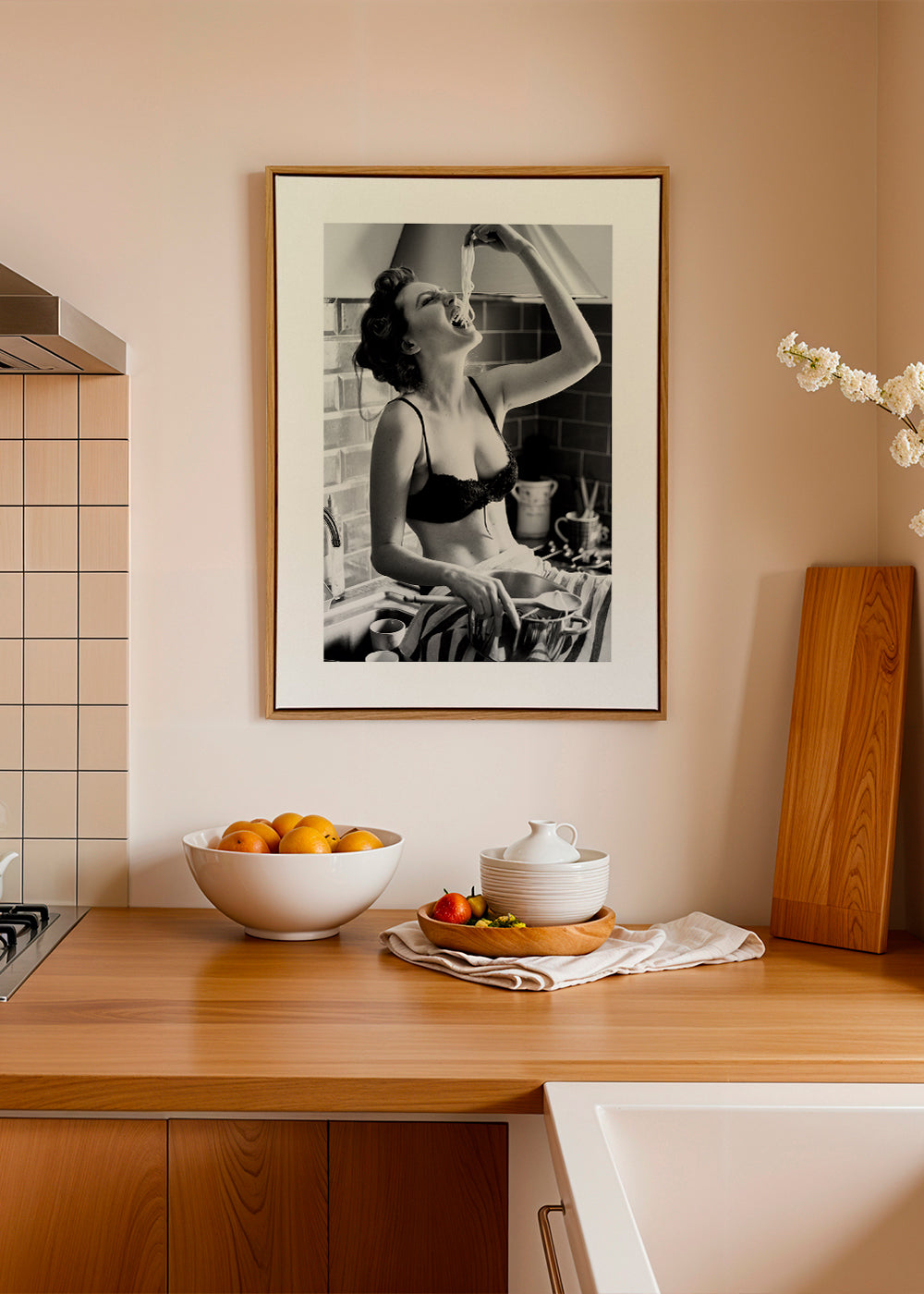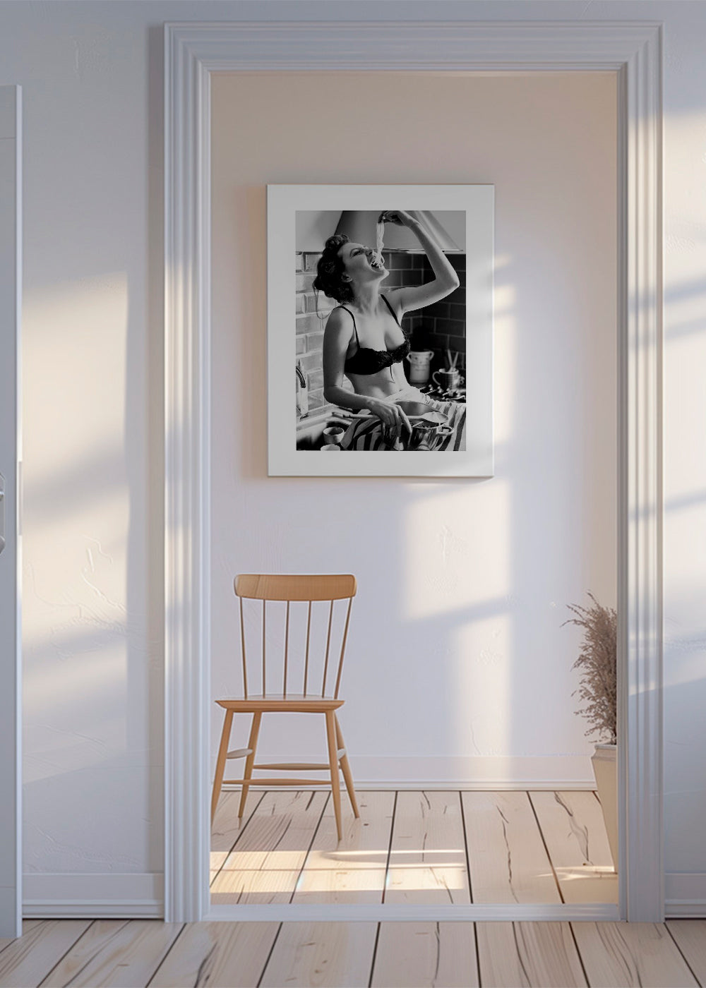 Una stampa appartenente alla categoria di quadri di donne, con sfumature dai toni monocromatico, e con disposizione verticale. Una decorazione monocromatica conferirà eleganza alle pareti della tua abitazione grazie al design in bianco e nero. Arte e design allo stato puro.