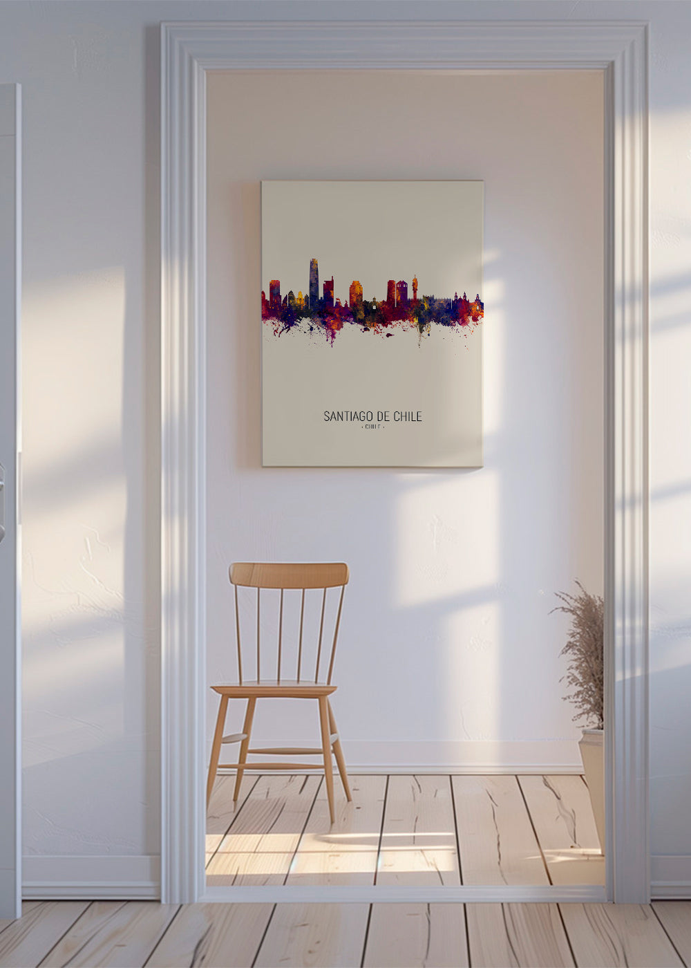 Quadro in bianco e nero Santiago de Chile Skyline beige