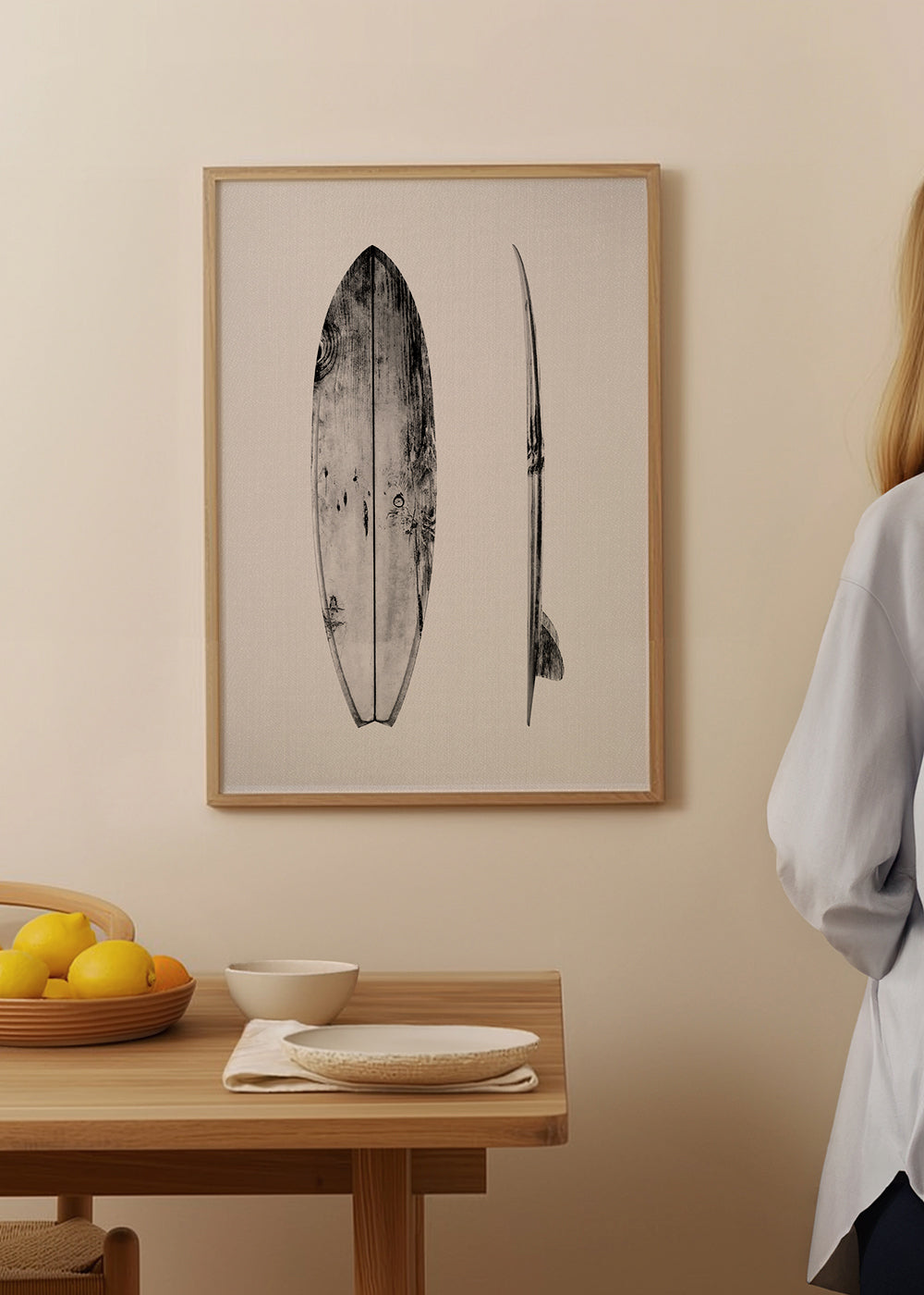 Questo quadro dal nostro repertorio di quadri di surf, realizzata da Gal Design, con dei tocchi monocromatico, e con orientamento verticale. Questa fotografia è perfetta da abbinare ad altri quadri con foto per creare una wall gallery. Una parete spoglia è priva di carattere, ma con qualche quadro le daremo personalità.