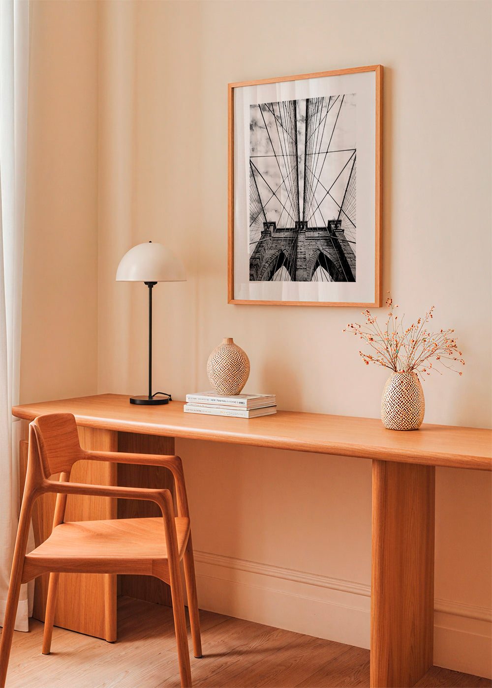 Tutti i nostri telai sono prodotti in Spagna. I telai bianco, nero e rovere sono realizzati in legno di Ayous, quelli in rovere sono impiallacciati in rovere, mentre quelli metallici sono in alluminio.